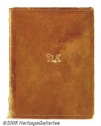 <B>"Conflict" Script.</B></I> Here is actress Alexis Smith's personal copy of the screenplay for the 1945 thriller "Conflict," in which she co-starred with Humphrey Bogart and Sydney Greenstreet. The script was leather-bound and monogrammed with her initials on the front cover as a gift from her father, with an 8" x 10" black-and-white photo of the actress from the movie pasted on a flyleaf page. In very good condition, with some scratches on the cover and moderate wear to the spine and cover edges.