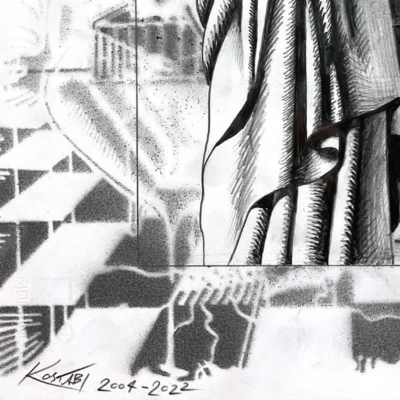 "Conflicting Ideologies" is an original drawing on paper by Mark Kostabi, hand signed by the artist. This piece is dated 2004-2022, which refers to the start and completion dates for the piece. This piece comes custom framed. Includes Certificate of Authenticity. Measures approx. 15" x 18" (frame), 9.5" x 13" (image).