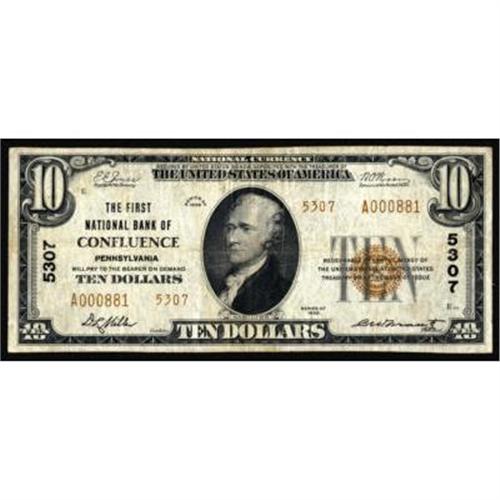 Confluence, PA. $10 1929 Ty. 2. The FNB. Charter #5307. Fine+.