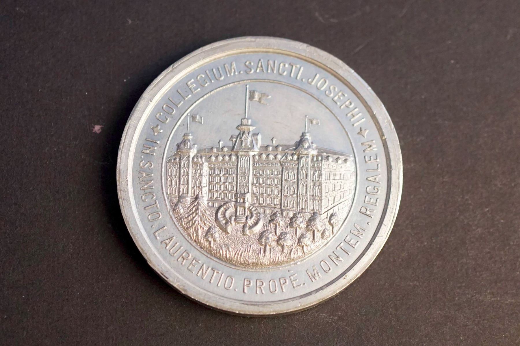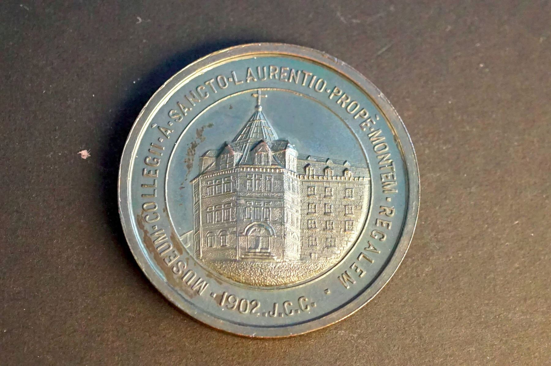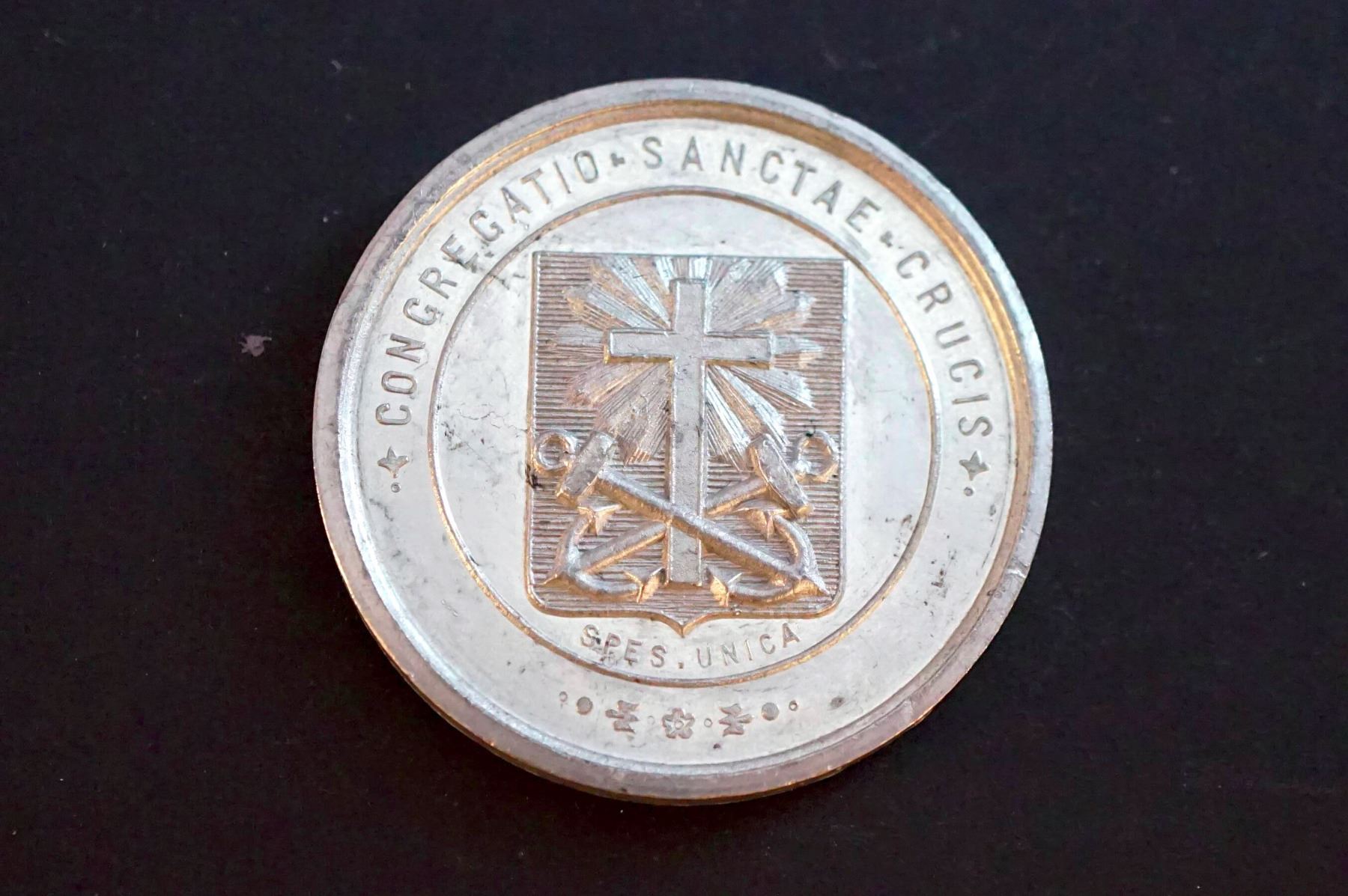 Congregation of the Holy Cross, Montréal - Collège St. Joseph (2), Collège St-Laurent (1) - Lot of three medals, all with a common reverse. 43 mm. The common Reverse: CONGREGATIO SANCTAE CRUCIS. In the central circle: a shield with a cross, radiate on the top half. At the bottom: Two anchors crossed. Below the shield: SPES UNICA. 1) MUSEUM COLLEGII. À. SANCTO LAURENTIO. PROPÈ-MONTEM REGALEM 1902 J. C. C. A central circle, depicting the college building, Darkened copper, 41.9 grams. UNC. 2) Aluminum, 33.5 grams. And 3) Copper, 53.7 grams, COLLEGIO SANCTI JOSEPHI SANCTO LAURENTIO PROPÈ MONTEM REGALEM. In the inner circle, a design of the college building.