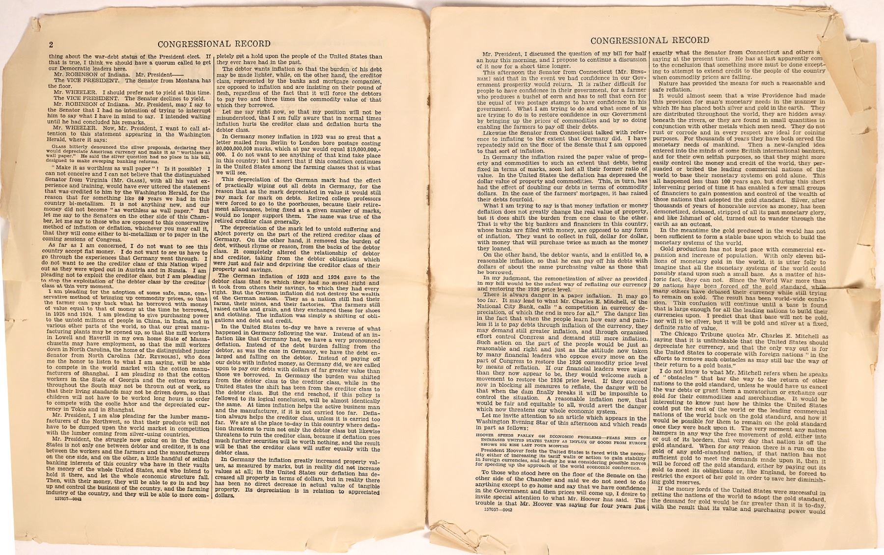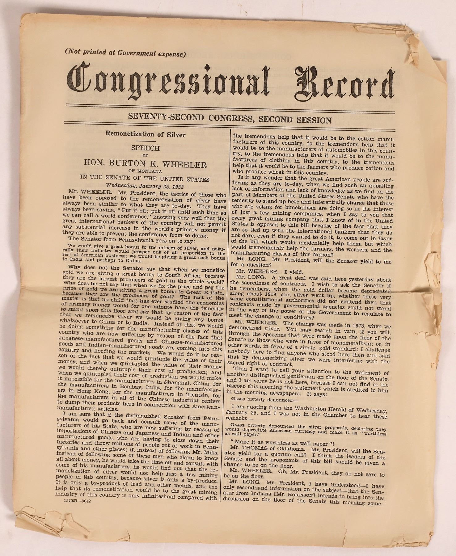 c. 1932-33 Congressional Record. Cover story is Remonitization of Silver. 9x11", some edge tatters.