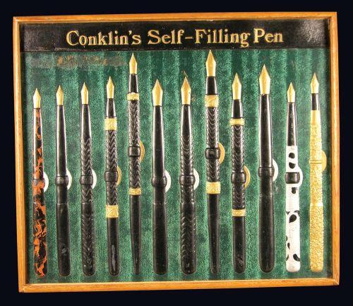 Conklins Self Filling Pen Display, embossed display, not actual product. Excellent condition. 11 X 9 1/2 X 2 inches.