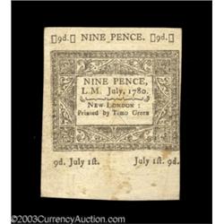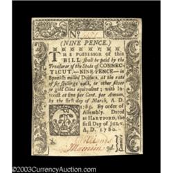 <TABLE cellSpacing=0 cellPadding=0 width="100%" bgColor=#000000 border=0><TBODY> <TR><TD width="100%"><TABLE cellSpacing=1 cellPadding=3 width="100%" border=0><TBODY><TR><TD width="100%" bgColor=#79735c><FONT face=arial color=#ffffff size=3><B>Description</B> </FONT></TD></TR><TR><TD width="100%" bgColor=#ffffff><FONT face=arial size=2><B>Connecticut July 1, 1780 9d Choice New.</B></I> Well margined and boldly signed, with the typical crosscut cancel. (175-up ) </FONT></TD></TR></TBODY></TABLE></TD></TR></TBODY></TABLE><BR><TABLE cellSpacing=0 cellPadding=0 width="100%" bgColor=#000000 border=0><TBODY><TR> Important notice: Heritage usually auctions material at the rate of 200-250 lots per hour. On some occasions eBay Live bid software or the Internet may not be able to keep up with the pace of the auction. We recommend placing a realistic absentee bid now as insurance to avoid disappointment. Occasionally the auctioneer may eliminate or reject an eBay Live bid, and the auctioneer may also reopen a lot after the close of the eBay live bidding (usually because we missed an audience bid), and may reject your bid even if it shows you as the winning bidder. By bidding via eBay Live, you agree that Heritage may award the lot to another bidder at its sole discretion under the circumstances described above or any other reasonable circumstances. Also please note that all Heritage lots purchased through eBay Live carry a 20% Buyer's Premium. Please make sure you read the Terms and Conditions before you bid.</TR></TBODY></TABLE>