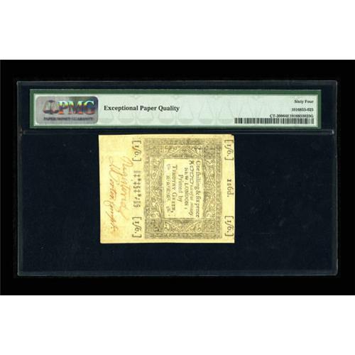 Connecticut June 19, 1776 1s/6d PMG Choice