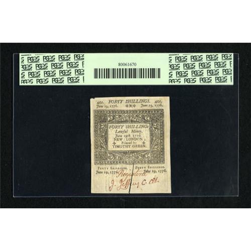 Connecticut June 19, 1776 40s Slash Cancel PCGS