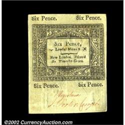 Connecticut June 19, 1776 6d New. A decent Connecticut, with a single inconspicuous slash cancel. Important notice: We expect to be auctioning lots at the rate of 200-250 per hour. Sometimes eBay Premier live bid software cannot keep up with that pace, so we strongly recommend that you place a realistic proxy bid now as insurance to avoid disappointment. Also please note that all Heritage/CAA lots purchased through eBay Premier carry a 20% Buyer's Premium. Please make sure you read the Terms and Conditions.
