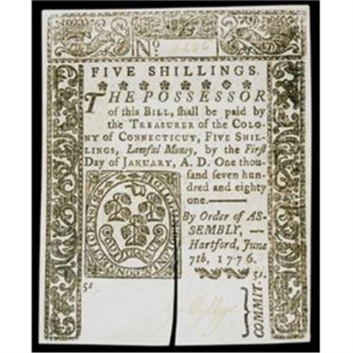 Connecticut, June 7, 1776, 5s, Superb Gem Crisp Uncirculated.
