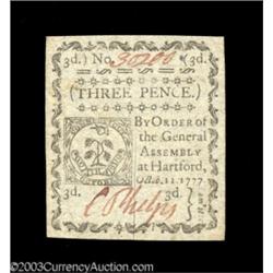 <TABLE cellSpacing=0 cellPadding=0 width="100%" bgColor=#000000 border=0><TBODY> <TR><TD width="100%"><TABLE cellSpacing=1 cellPadding=3 width="100%" border=0><TBODY><TR><TD width="100%" bgColor=#79735c><FONT face=arial color=#ffffff size=3><B>Description</B> </FONT></TD></TR><TR><TD width="100%" bgColor=#ffffff><FONT face=arial size=2><B>Connecticut October 11, 1777 3d Choice About New.</B></I> This blue-paper Small Change note is slit canceled, but it's boldly signed, bright and very attractive. (150-up ) </FONT></TD></TR></TBODY></TABLE></TD></TR></TBODY></TABLE><BR><TABLE cellSpacing=0 cellPadding=0 width="100%" bgColor=#000000 border=0><TBODY><TR> Important notice: Heritage usually auctions material at the rate of 200-250 lots per hour. On some occasions eBay Live bid software or the Internet may not be able to keep up with the pace of the auction. We recommend placing a realistic absentee bid now as insurance to avoid disappointment. Occasionally the auctioneer may eliminate or reject an eBay Live bid, and the auctioneer may also reopen a lot after the close of the eBay live bidding (usually because we missed an audience bid), and may reject your bid even if it shows you as the winning bidder. By bidding via eBay Live, you agree that Heritage may award the lot to another bidder at its sole discretion under the circumstances described above or any other reasonable circumstances. Also please note that all Heritage lots purchased through eBay Live carry a 20% Buyer's Premium. Please make sure you read the Terms and Conditions before you bid.</TR></TBODY></TABLE>