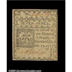 Connecticut October 11, 1777 7d About New. Slit canceled as almost always, and on blue paper. Import