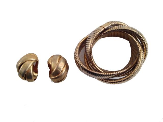 Gold Twist Linked Bracelet & Gold Twist Design Clip-On Earrings (faux) (screenworn) (PAUL)