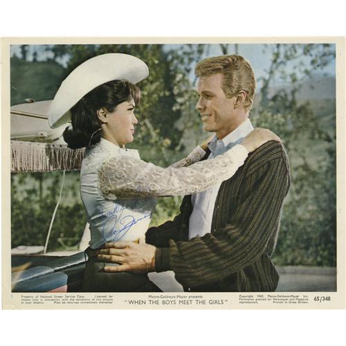 <B>Connie Francis Autographed Photo.</B></I> A color 8" x 10" promo photo for <I>When the Boys Meet the Girls</B></I> inscribed and signed by Francis in blue ball point, in Very Fine condition with faint tanning and mild creasing and wear to the edges and corners.<BR><BR><b>Shipping:</b> Flat Material, Small (<a target="_blank" href="http://www.heritageauctions.com/common/shipping.php">view shipping information</a>)