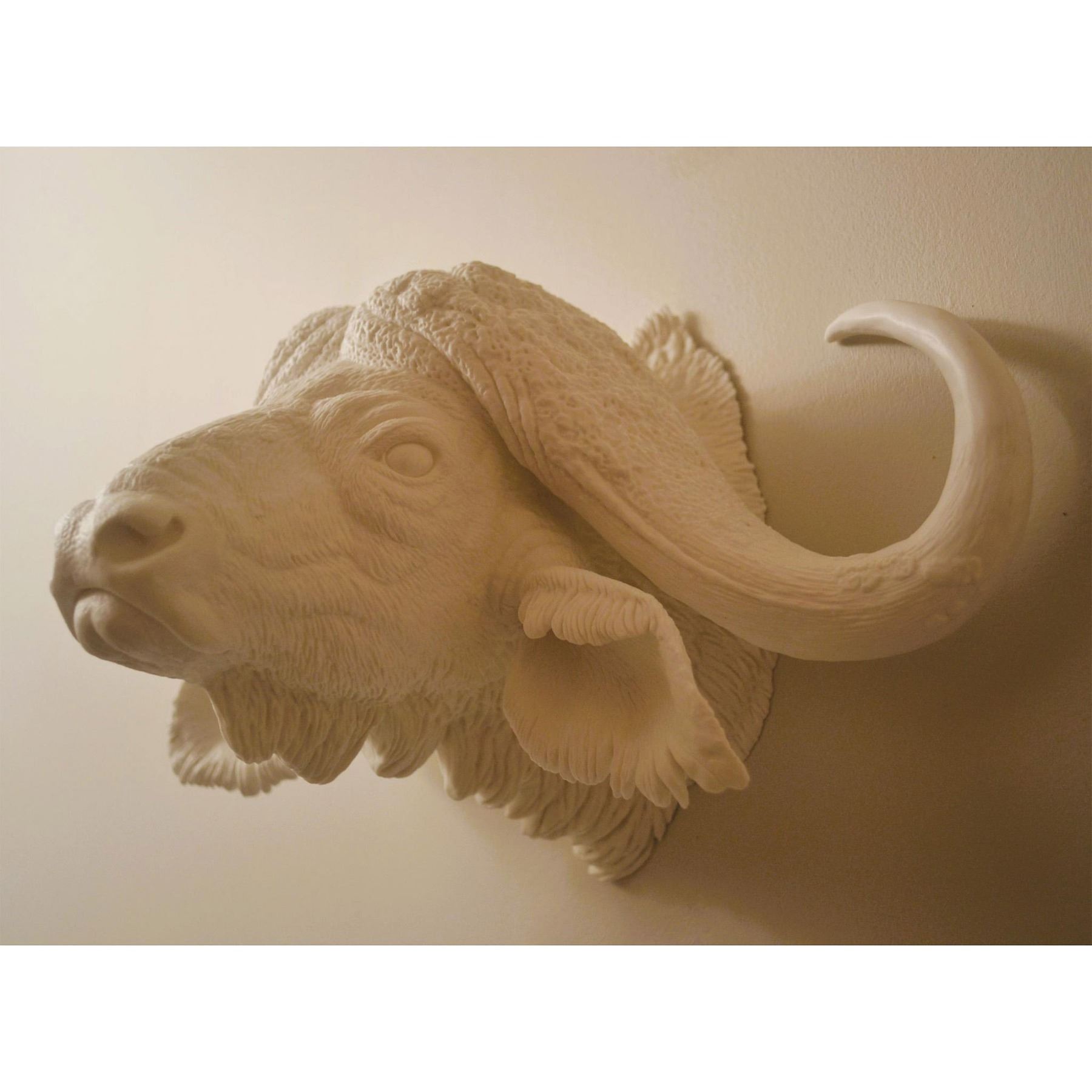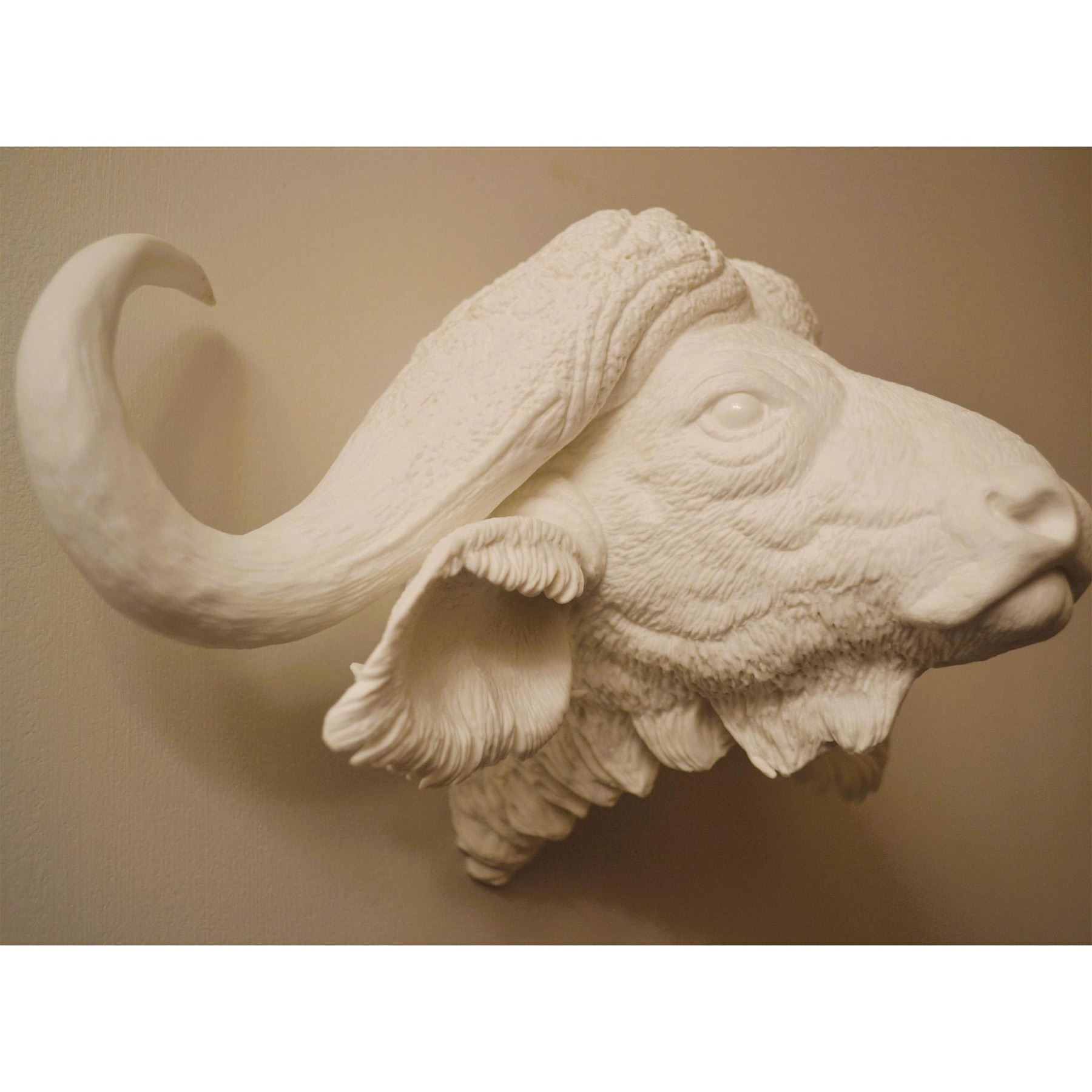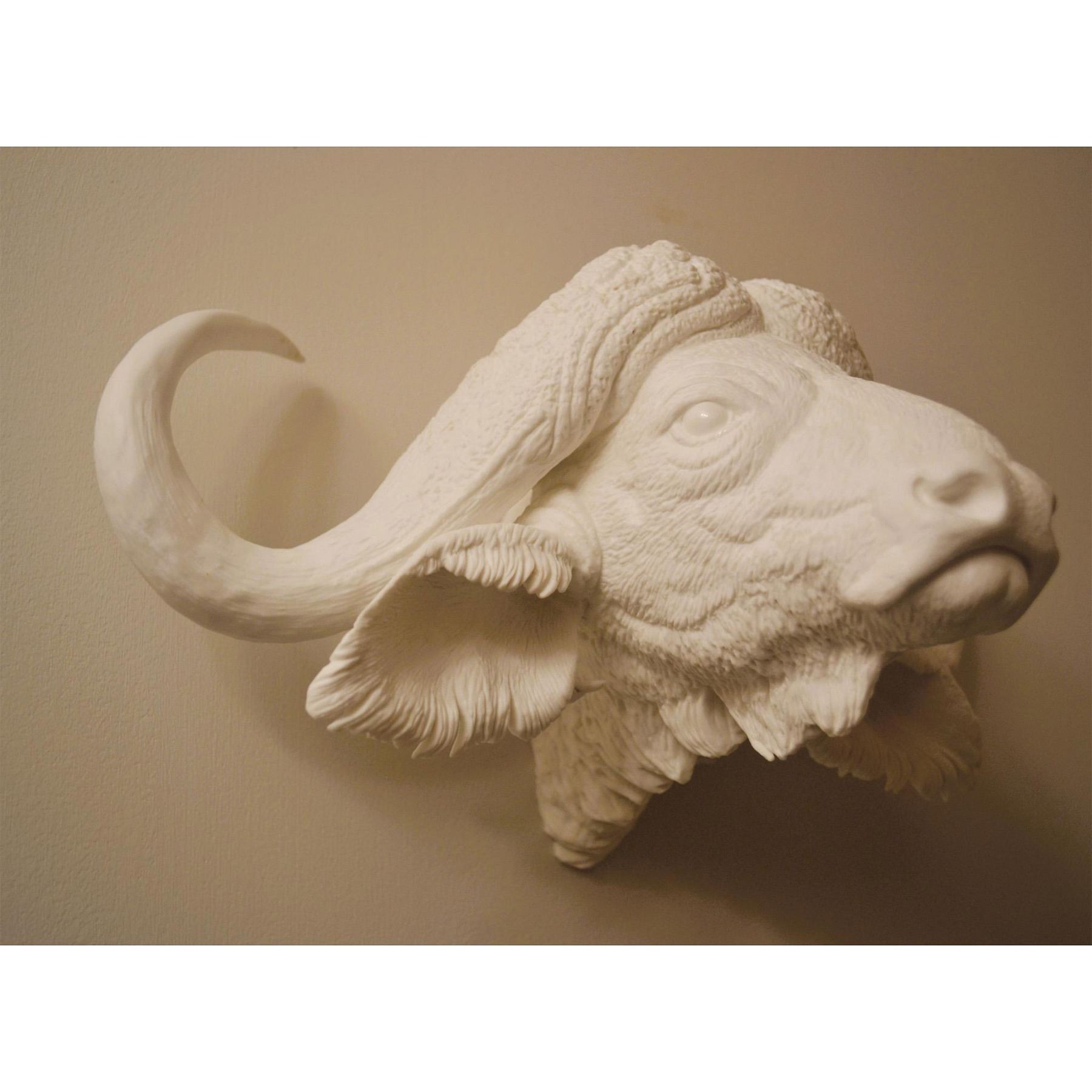 Fine Bone China, White Glazed, hand created, hand painted by the Artists of the Connoisseur Studio in the UK. Featuring the Cape Buffalo Head Sculpture, in Three Dimensional Form, for a Wall Mount. An AP Model Prototype. Signed AP, Connoisseur, on the underside. A study of the Cape Buffalo, in Southern and East Africa. A Head Model, in Three Dimension with a Cross Mount on the reverse for wall hanging. Fine detail, design, quality and style is featured in the modeling and studying of all Connoisseur Museum Quality Porcelains. All Porcelain Sculptures are hand-painted, with exquisite detail maintained through the dedication of each artist and craftspeople, recognized as some of the finest in the world. See photos for further reference. From the Archival Collection of Re Vann Galleries, G.Reasoner, Owner.