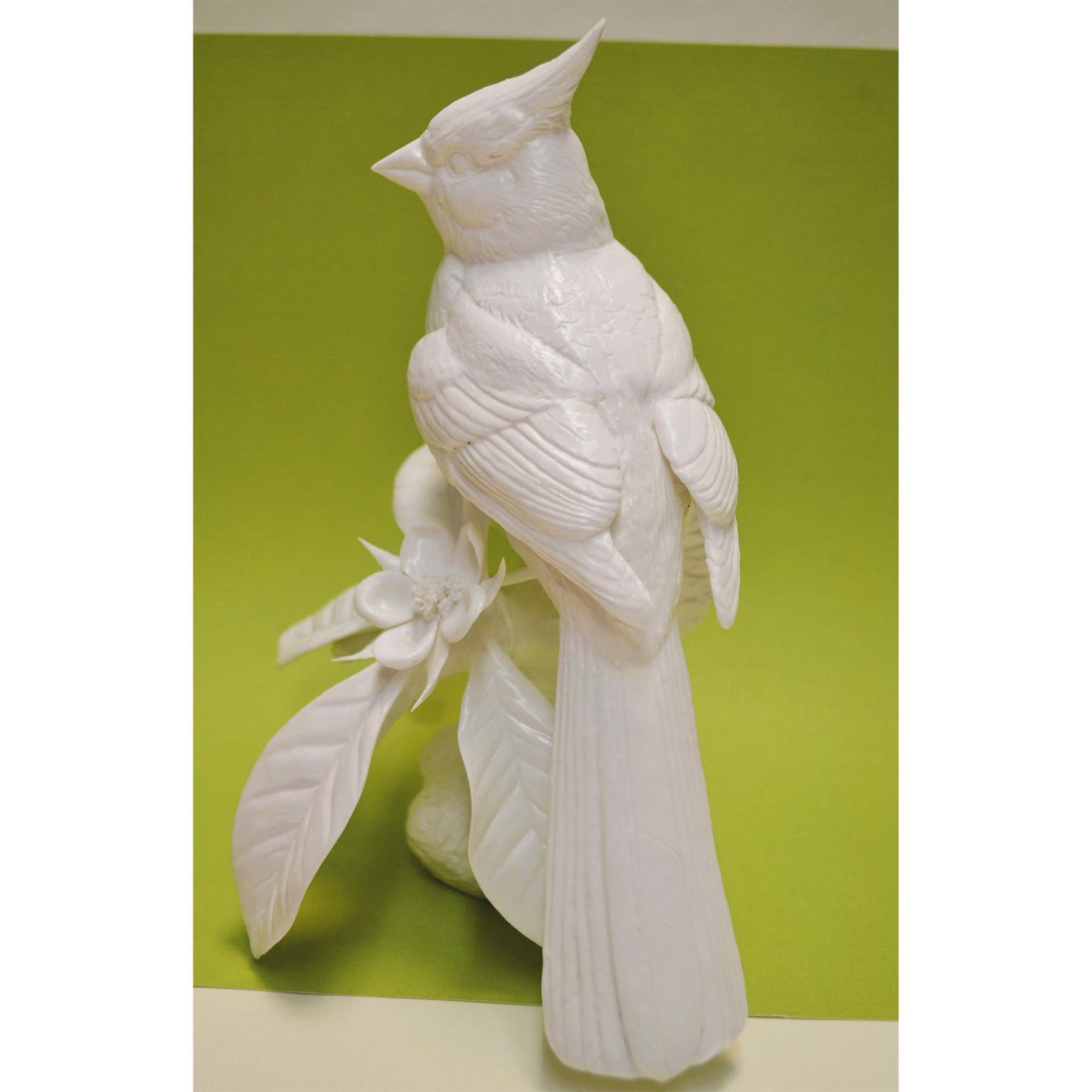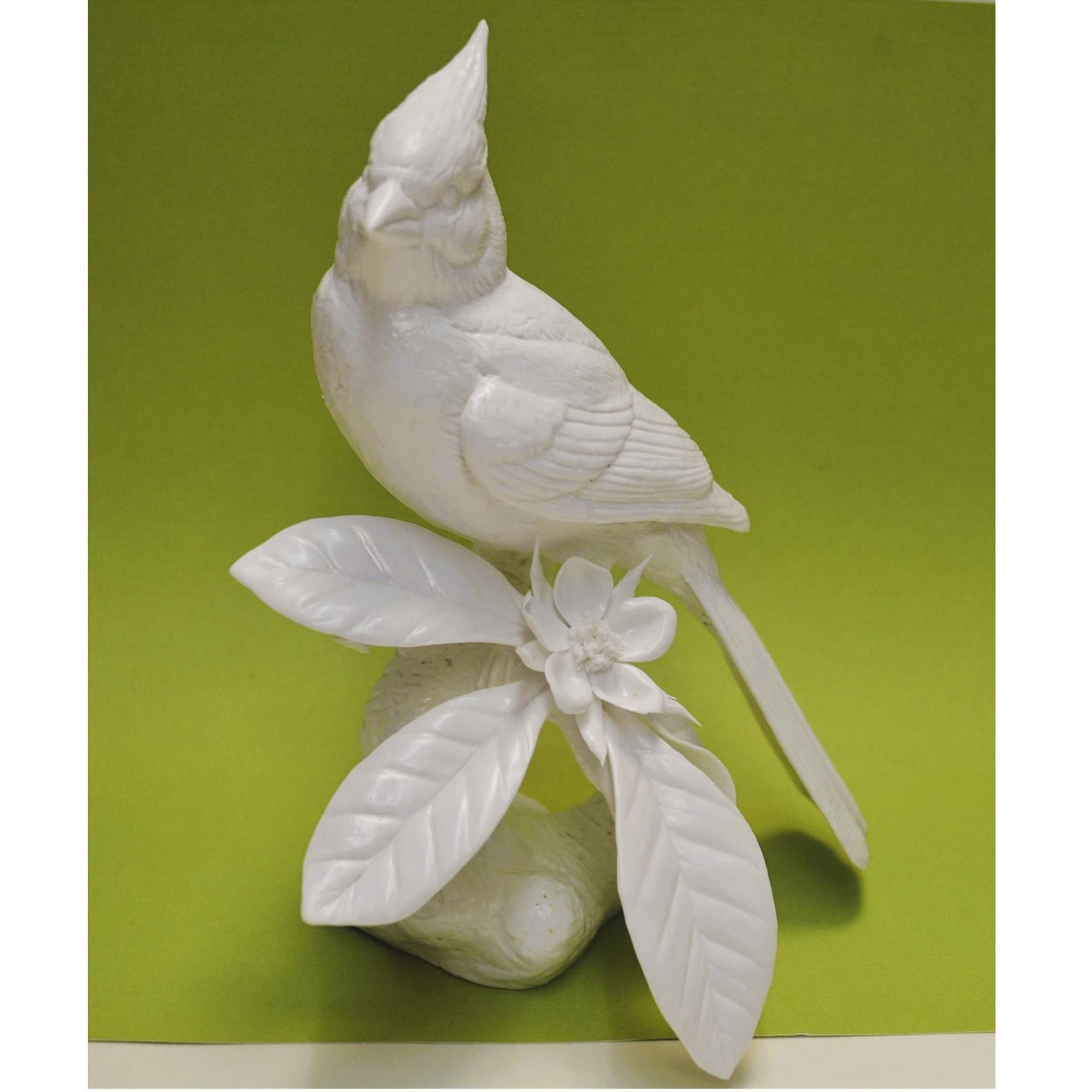 Fine Bone China, White, Glazed, hand created, by the Artists of the Connoisseu Studio in the UK. Featuring a Cardinal Bird Sculpture, AP Model Prototype. Signed AP, Connoisseur, on the underside. Fine detail, design, quality and style is featured in the creating of all Connoisseur Museum Quality Porcelains. See photos for further reference. From the Archival Collection of Re Vann Galleries, G.Reasoner, Owner.