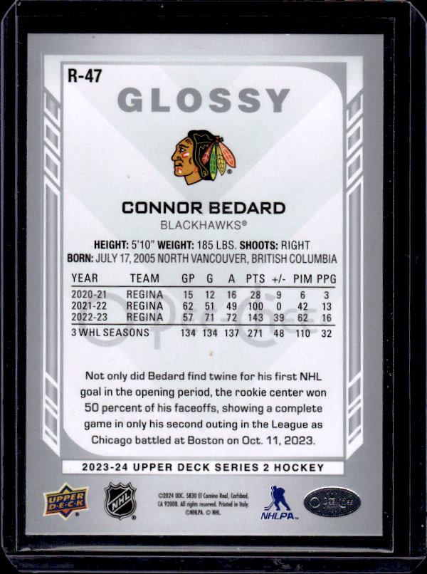 Connor Bedard Glossy Rookie Card 2023-24 UD #R47