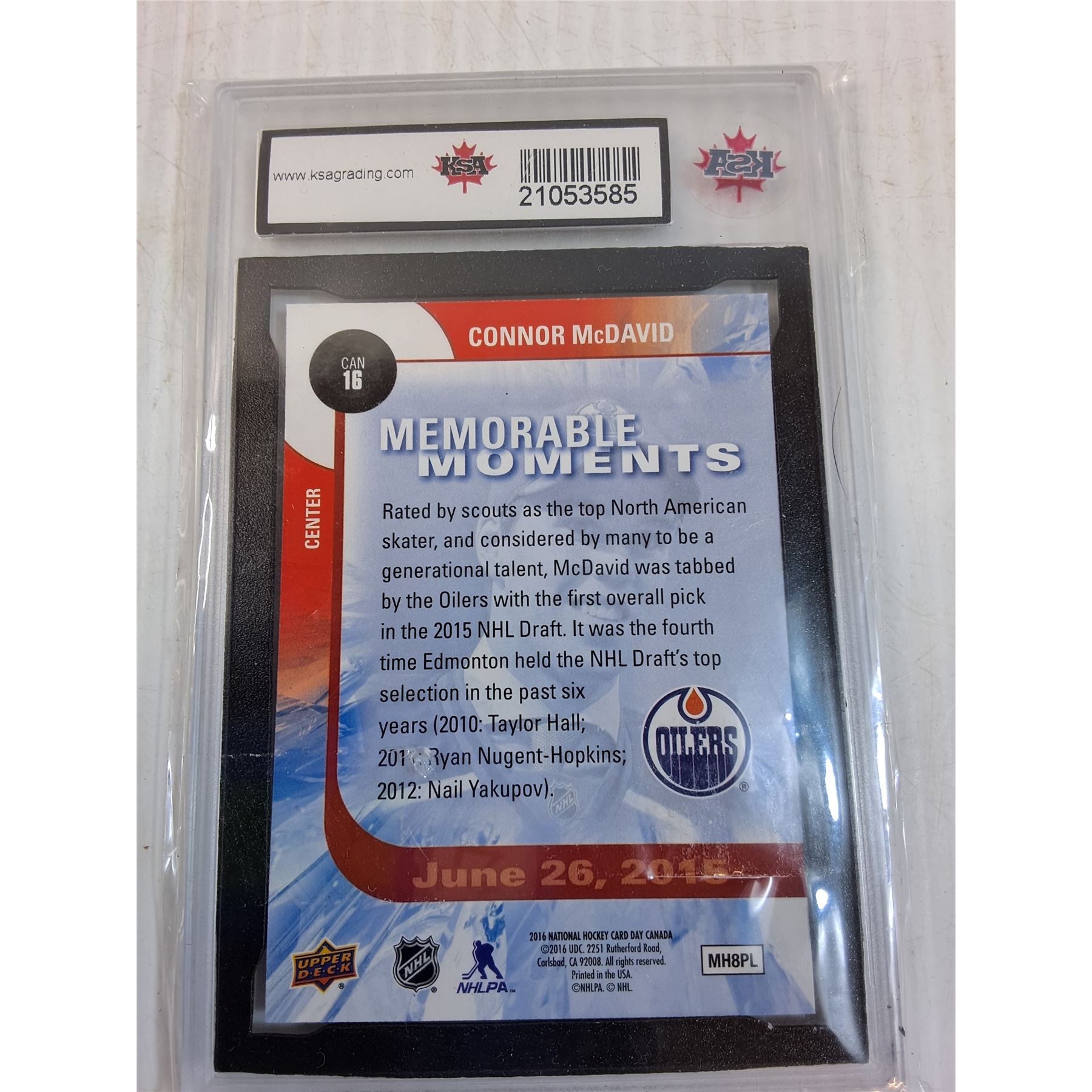 Connor McDavid Hockey Trading Card - 2015-16 - Graded - CANNOT GUARANTEE AUTHENTICATION