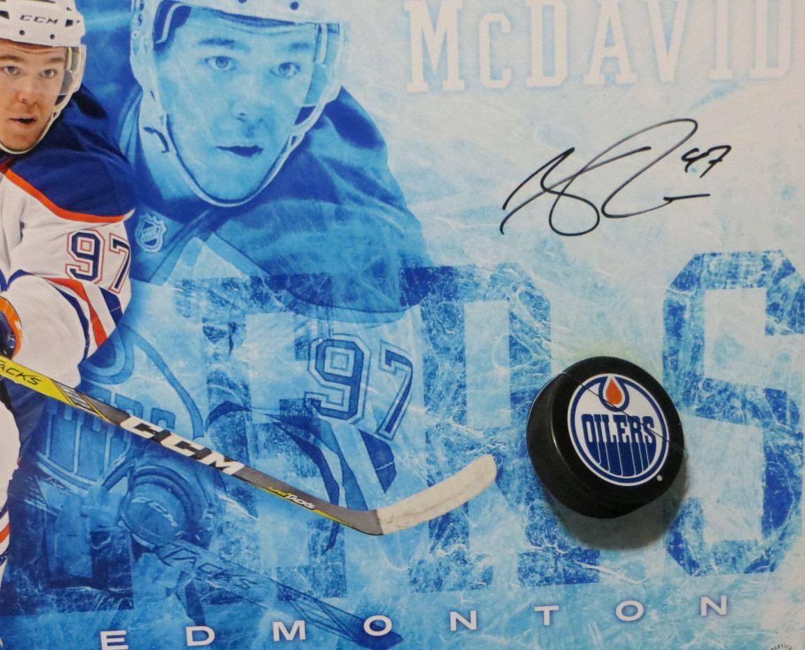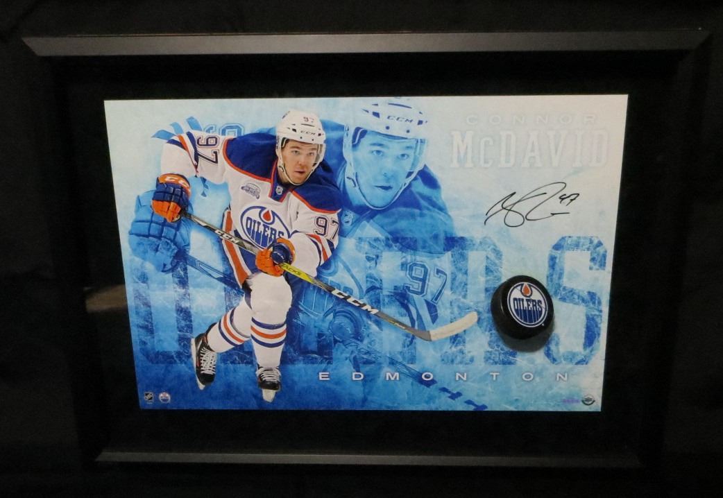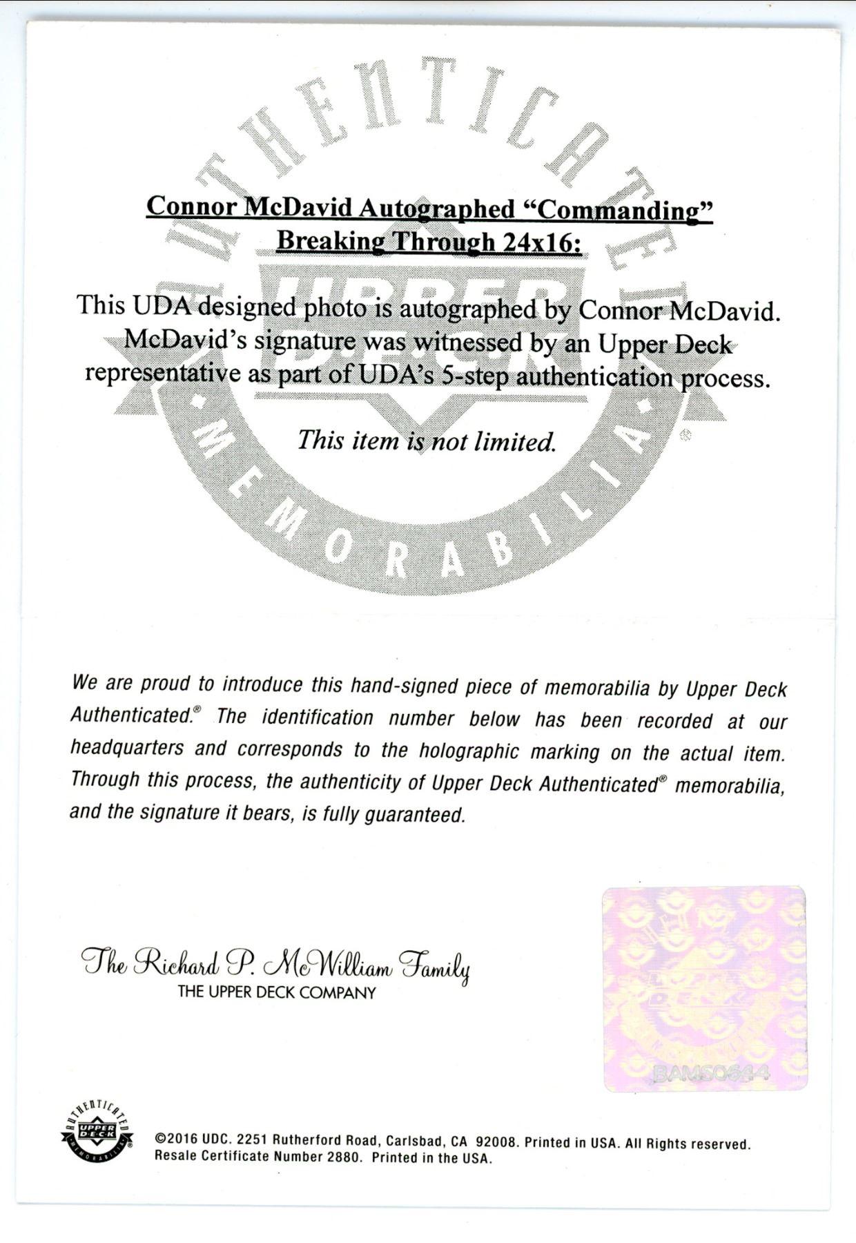 Connor McDavid Rookie Year "Commanding" Breaking Through Autographed UDA Framed 30x22