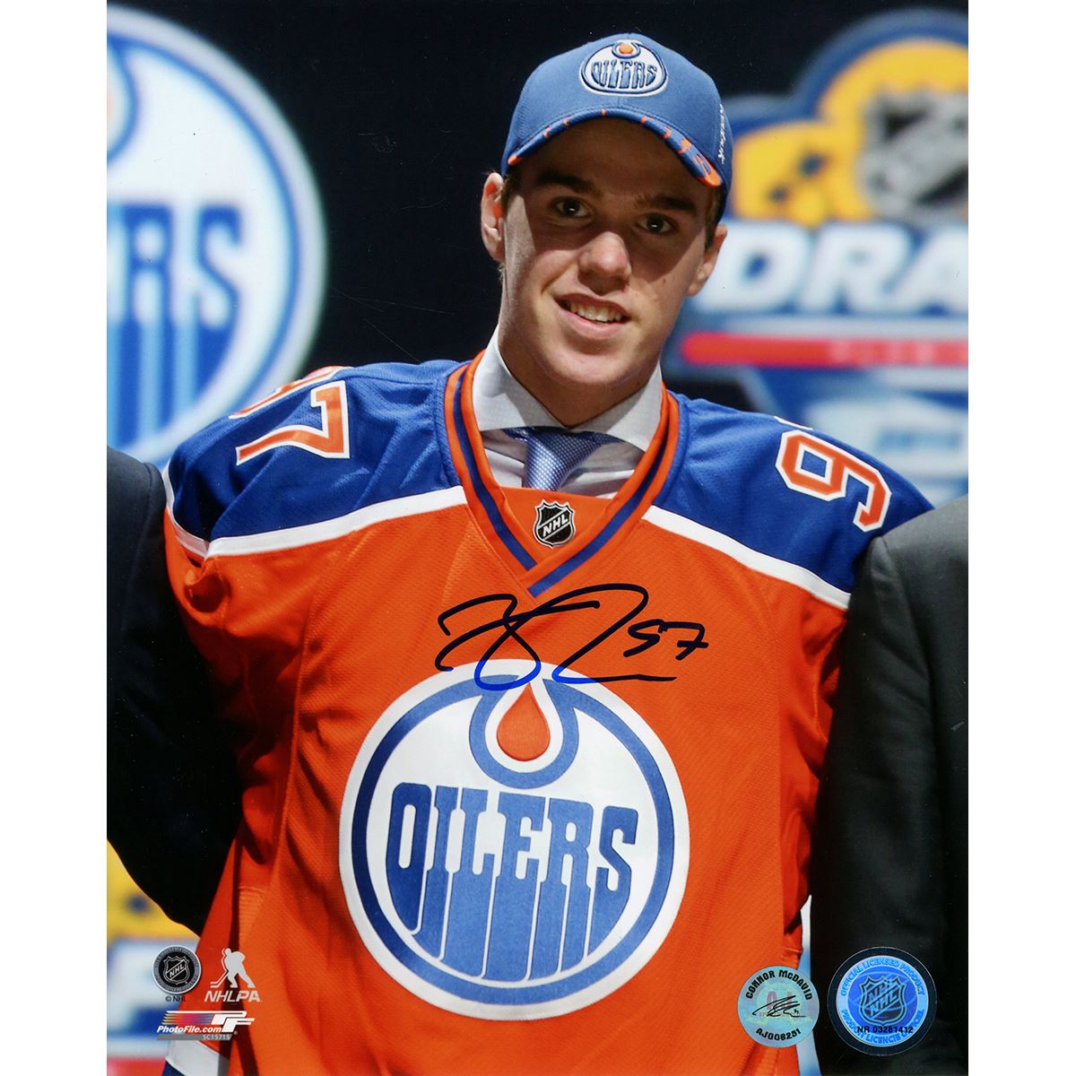 Connor McDavid Signed Edmonton Oilers Draft Day 8x10 Photo ( AJS Auth)