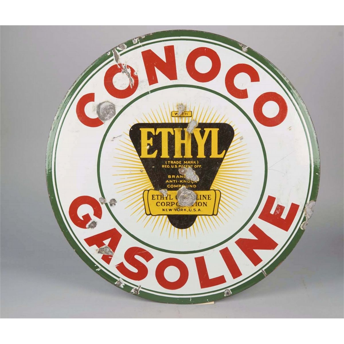 Reads "With Ethyl Brand Of Anti-Knock Compound", Ethyl Gasoline Corporation, New York USA, circa 1930s. Condition (Fair). Size 30" d.