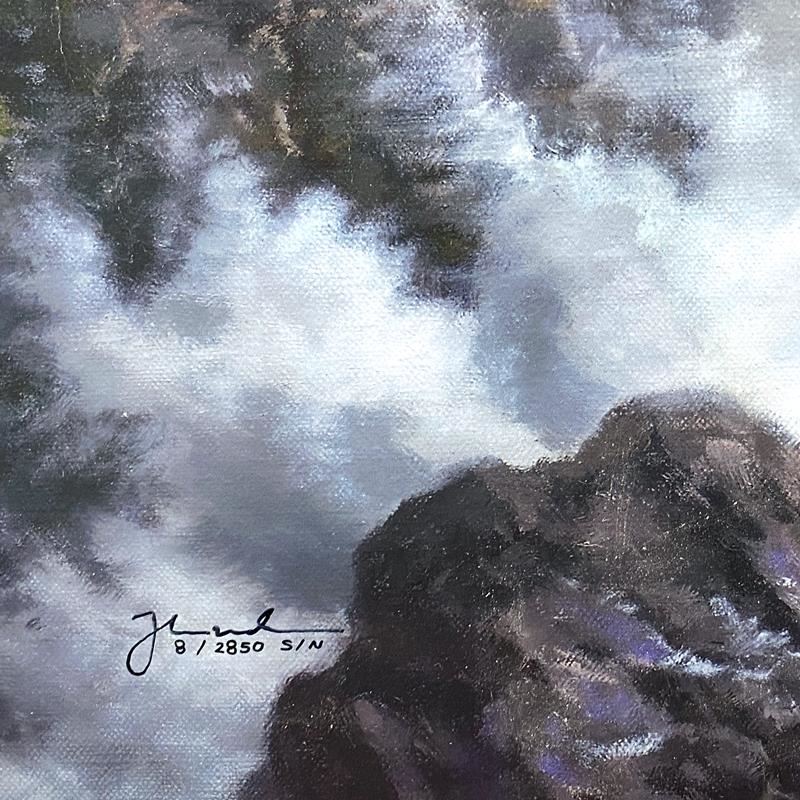 "Conquering the Storms" is an limited edition offset lithograph on paper by Thomas Kinkade (1958-2012), numbered and bearing Kinkade's authorized signature. This piece comes framed. Letter of Authenticity. Measures approx. 35" x 49" (frame), 27.5" x 41.5" (image).