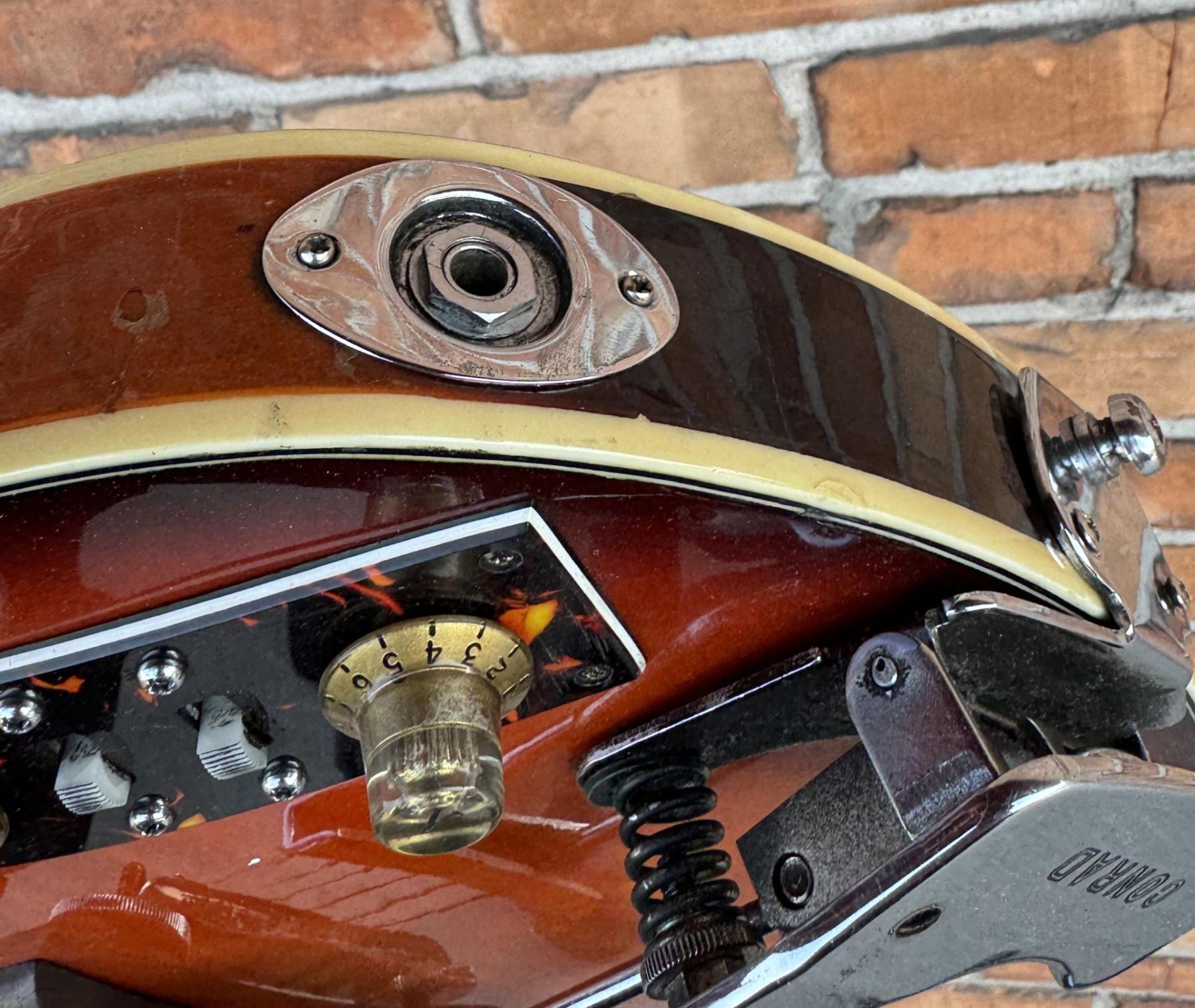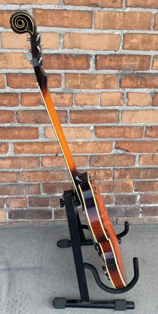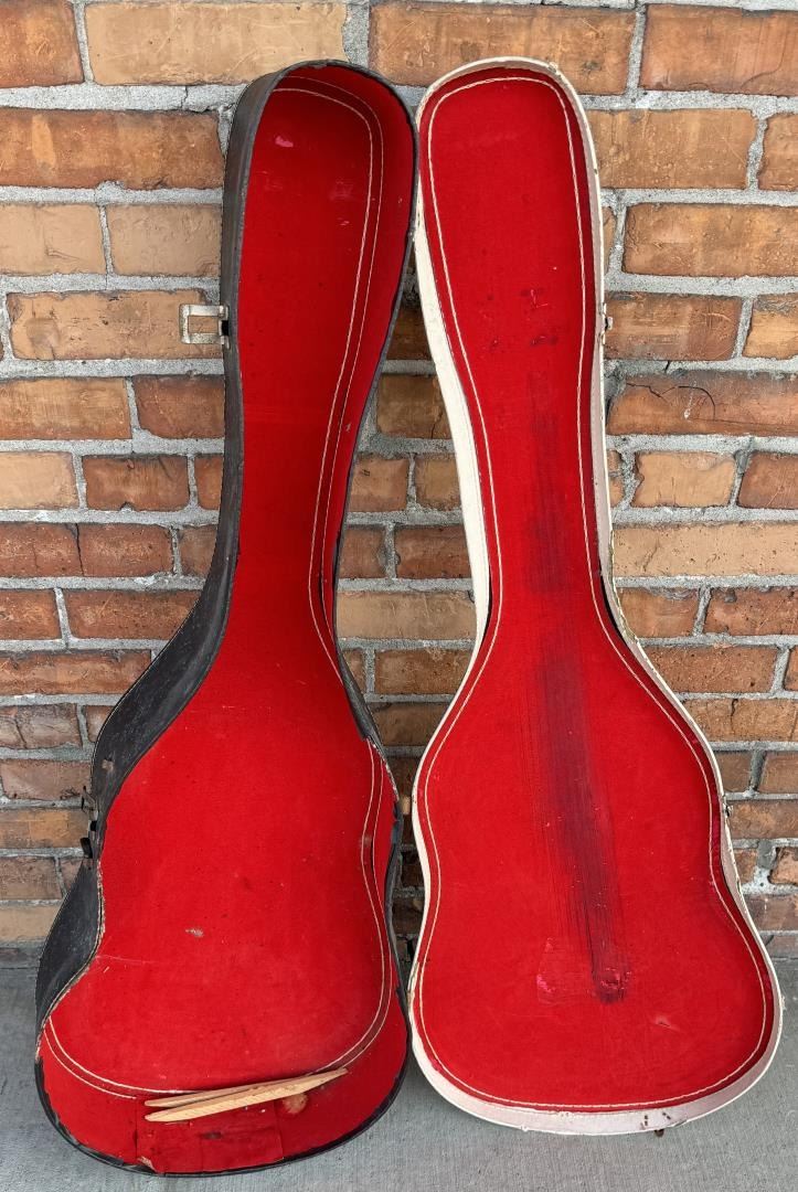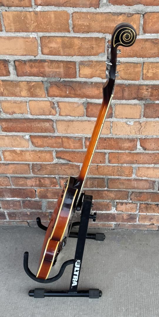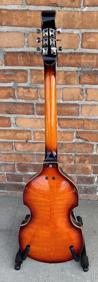 1960s Conrad Violin style electric guitar, 39" overall length. Not working. Cracked body as shown.