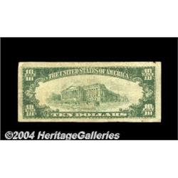 Conroe, TX - $10 1929 Ty. 2 First NB Ch. # 12809Small notes only from this much sought after Houston area bank, with only five appearances from here at public sale during the past six decades. This newly discovered example is one of only two Type 2 notes recorded in any denomination from here. Very Fine. <BR><BR><B>Important notice:</B> Heritage usually auctions material at the rate of 200-250 lots per hour. On some occasions eBay Live bid software or the Internet may not be able to keep up with the pace of the auction. We recommend placing a realistic absentee bid now as insurance to avoid disappointment. Occasionally the auctioneer may eliminate or reject an eBay Live bid, and the auctioneer may also reopen a lot after the close of the eBay live bidding (usually because we missed an audience bid), and may reject your bid even if it shows you as the winning bidder. By bidding via eBay Live, you agree that Heritage may award the lot to another bidder at its sole discretion under the circumstances described above or any other reasonable circumstances. Since eBay bids are not shown to us until we open the lot on the floor, we treat those bids just like floor bids. In most cases the floor responds before the eBay bid is presented to us, due to Internet lag time, so for consistency we have made it a policy that floor bids are always considered first over tie eBay live bids. Also please note that all Heritage lots purchased through eBay Live carry a 20% Buyer's Premium. Please make sure you read the Terms and Conditions before you bid. <BR><BR><B>IMPORTANT ANNOUNCEMENT ABOUT RESERVES:</B> Heritage now divulges all reserves on its web site 7 days before every auction. If you want to know whether the reserve on this lot has been met, and if not, what the reserve amount is, please visit this lot page on the HeritageCoin.com web site, or email: bid@HeritageGalleries.com