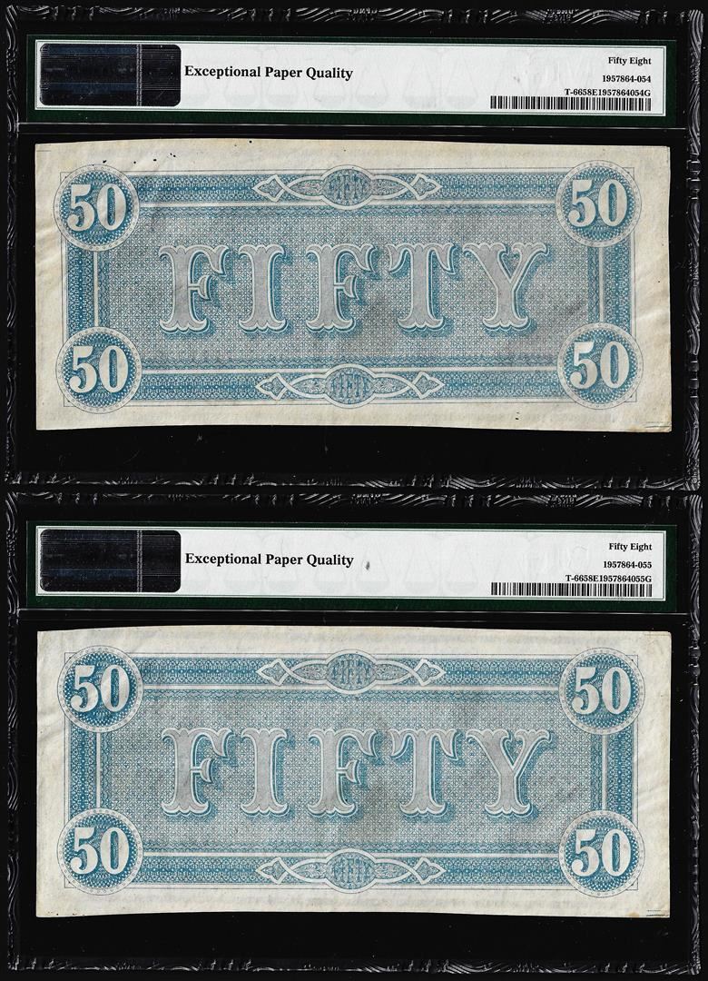 Consecutive 1864 $50 Confederate States of America Notes PMG About Uncirculated 58EPQ