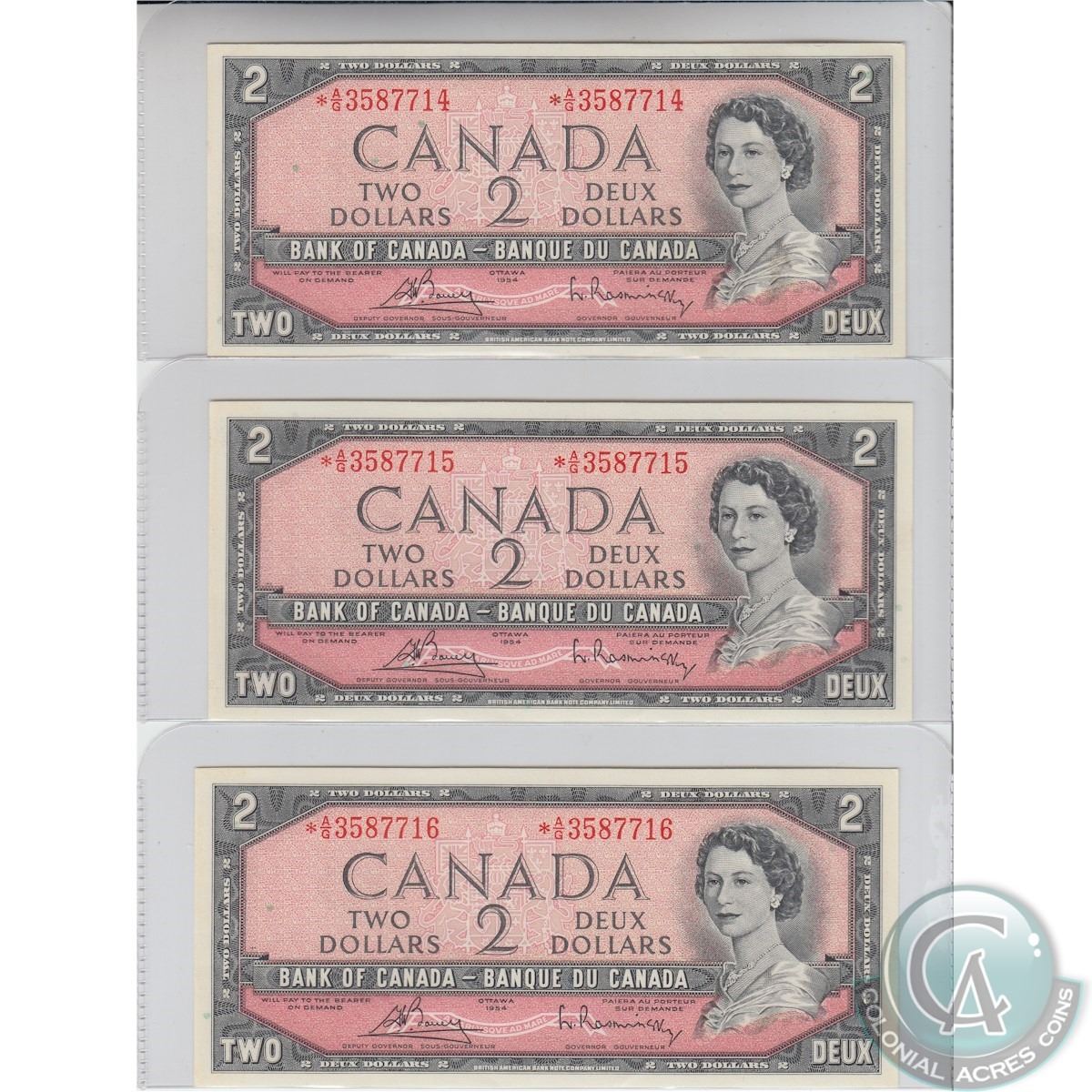 Consecutive 1954 $2 Bouey-Rasminsky *A/G replacement Banknotes Uncirculated or better BC-38cA (Above 3.20M) Set includes Serial #3587714/15/16. 3pcs