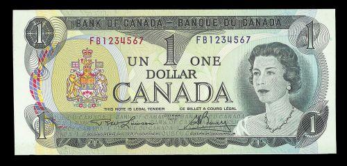 Consecutive "Ascending ladder numbered note" FB 1234567 $1 1973 Lawson-Bouey Gem uncirculated.