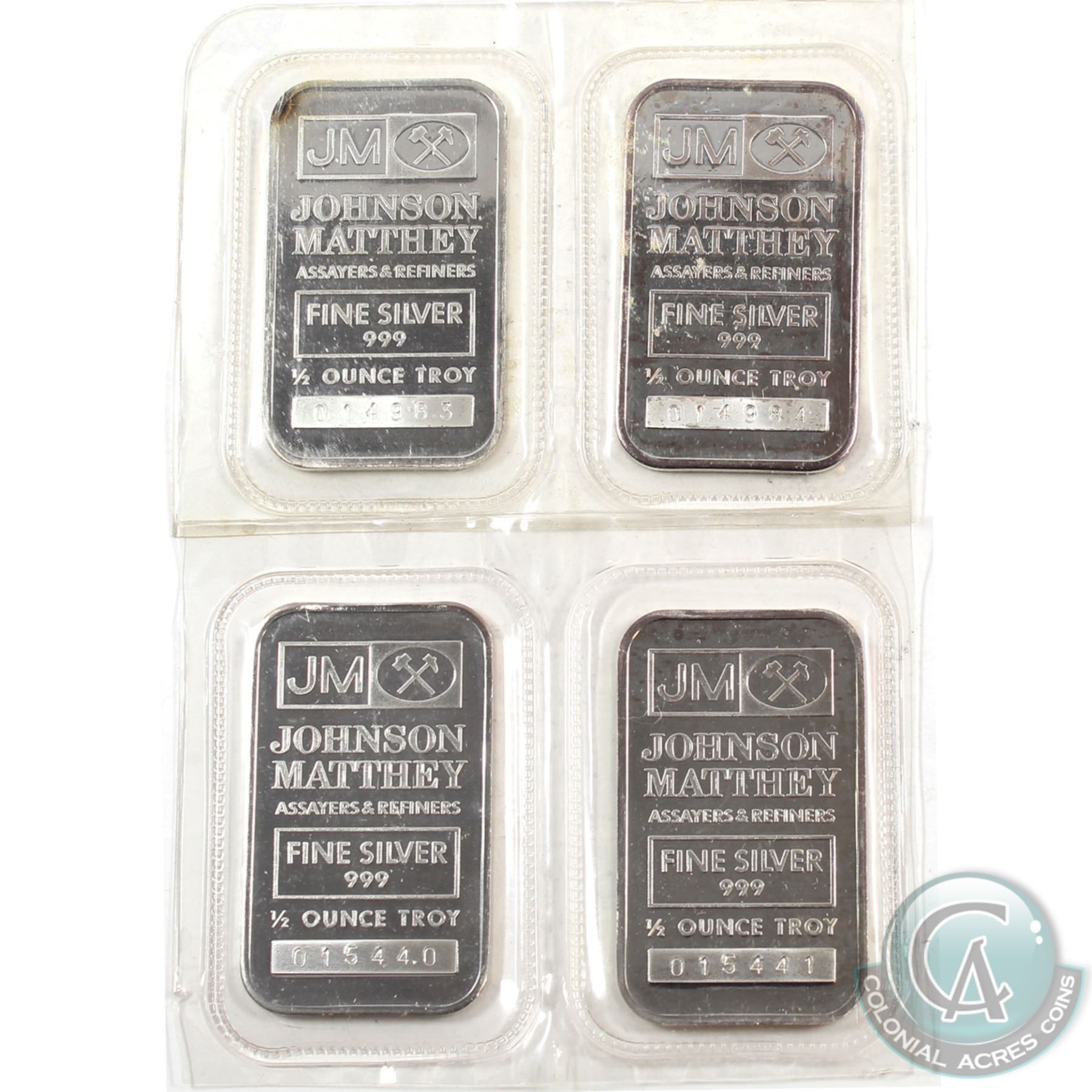 Consecutive Johnson Matthey 1/2oz Fine Silver Bars with 'JM Logo' Reverse (TAX Exempt). Serial # 015440 & 015441, #014983 & 041984. 4pcs.