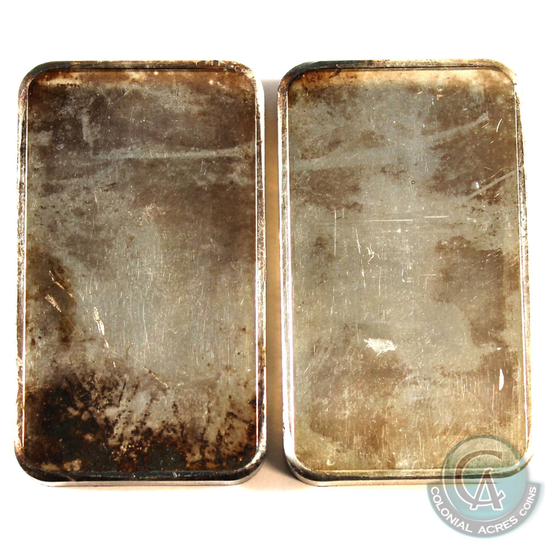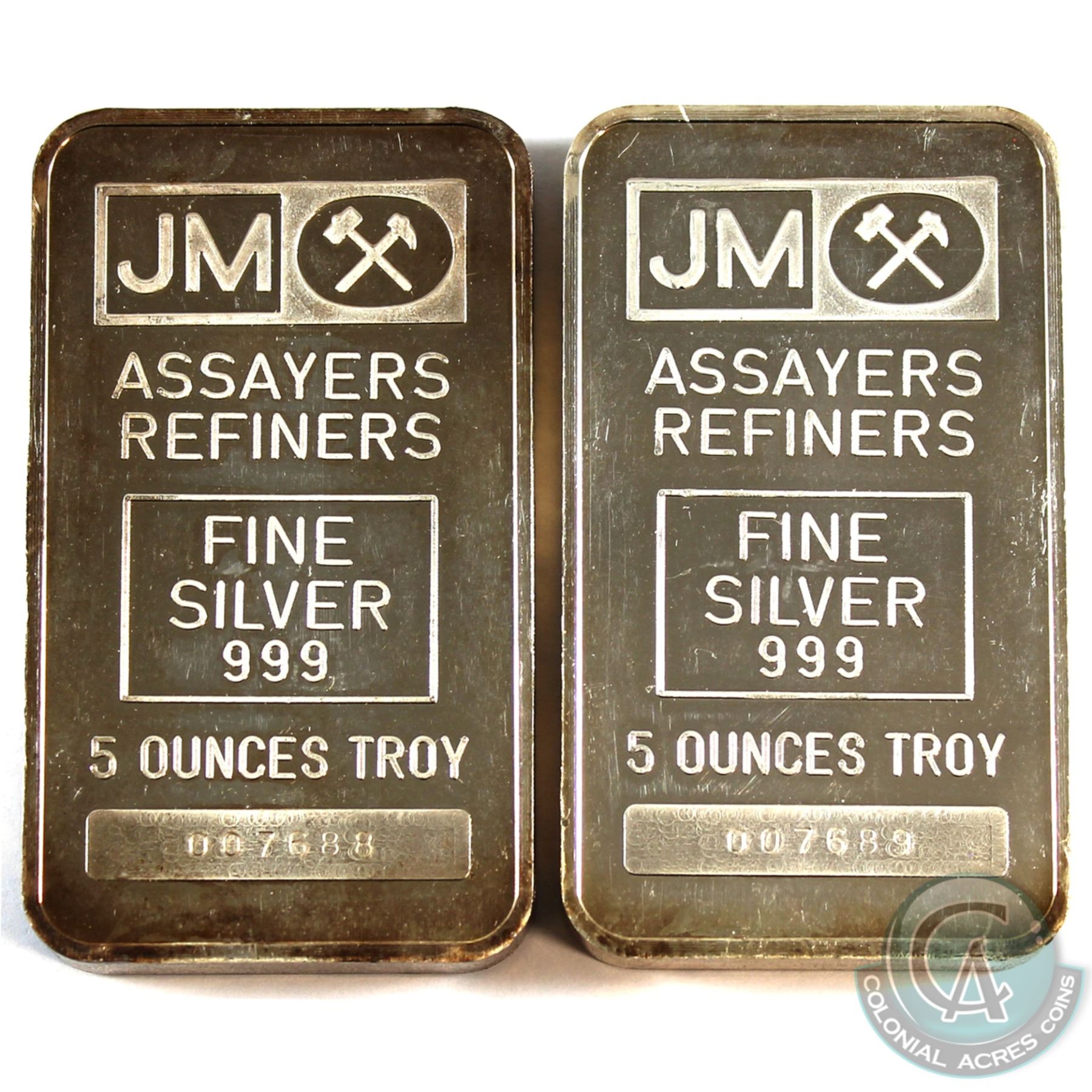 Consecutive Johnson Matthey 5oz Fine Silver Bar with Blank Reverse (TAX Exempt). Serial # 007688 & # 07689. 2pcs.
