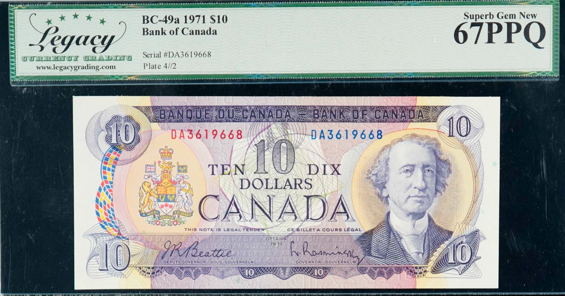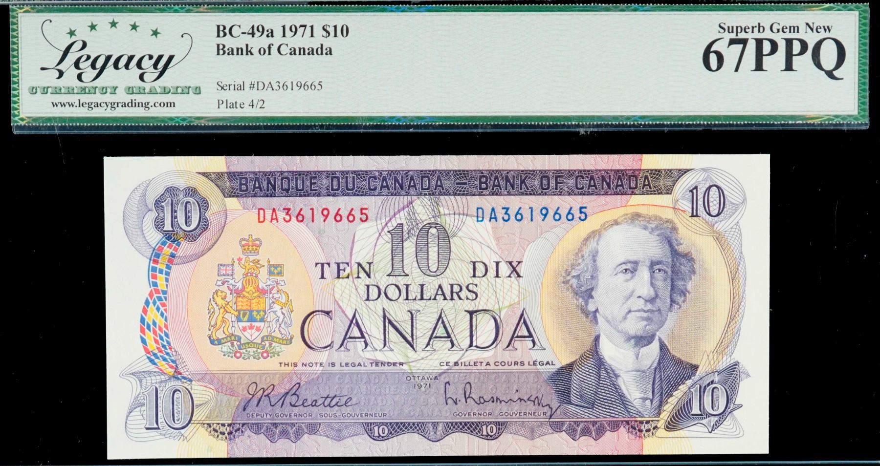 The cataloguer has taken every reasonable measure to ensure that all of the lots in this sale are as described and genuine. All raw coins and banknotes have been graded by the cataloger or the auction house which represent our best professional opinion. To grade coins and banknotes, we use Canadian grading standards, 42 years of experience and good conscience. However, grading is a subjective description in the opinion of the cataloger or the auction house. Among experts there are often differences of opinion on the grading and the eye appeal of a coin. The strike and the state of preservation are often debated. The Canadian Numismatic Company acts as an agent between consignors and buyers. The Canadian Numismatic Company does not guarantee that any coin or banknote cataloged will meet the standards, or the grade, of any third party grading companies. No warranty, whether impressed or implied. Items are as is, no warranty given. We cannot accept responsibility and waive all liability resulting in financial losses, and or incidentals accruing from the sale of any items, nor can we guarantee that items graded by third party services will grade the same if submitted to a different grading service or re-submitted to the same company. Statements by The Canadian Numismatic Company regarding the condition, the eye appeal, the strike and the population of items are for guidance only. All lots offered are sold "AS IS". Title to all lots remains with the auction house until paid for in full by the purchaser. But they are held at the risk of the purchaser once the time of the sale.