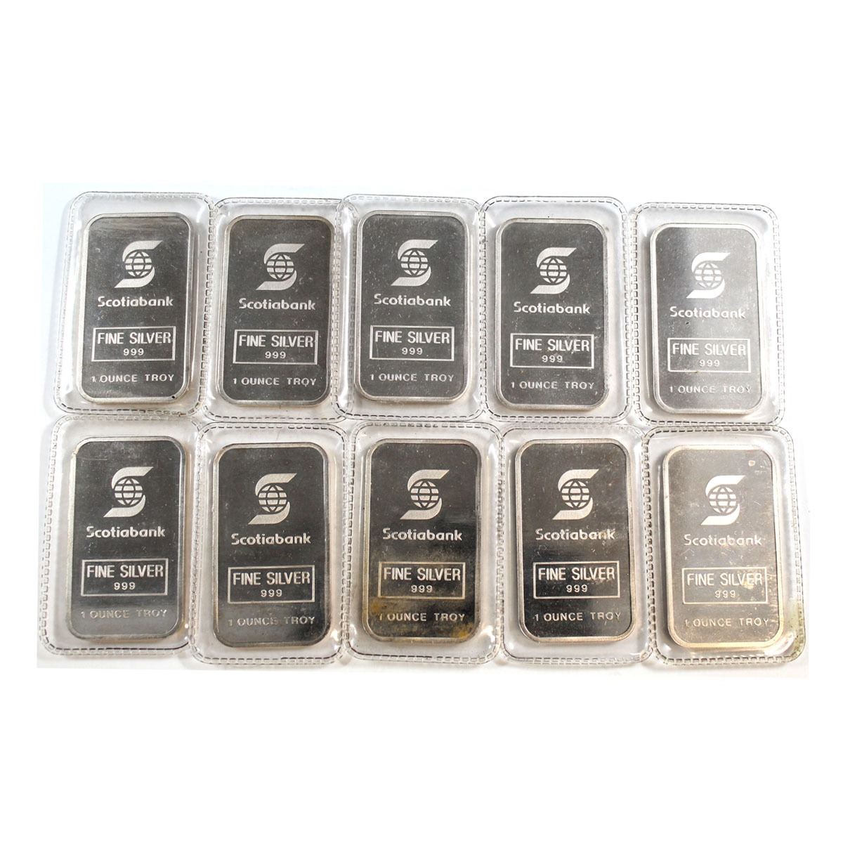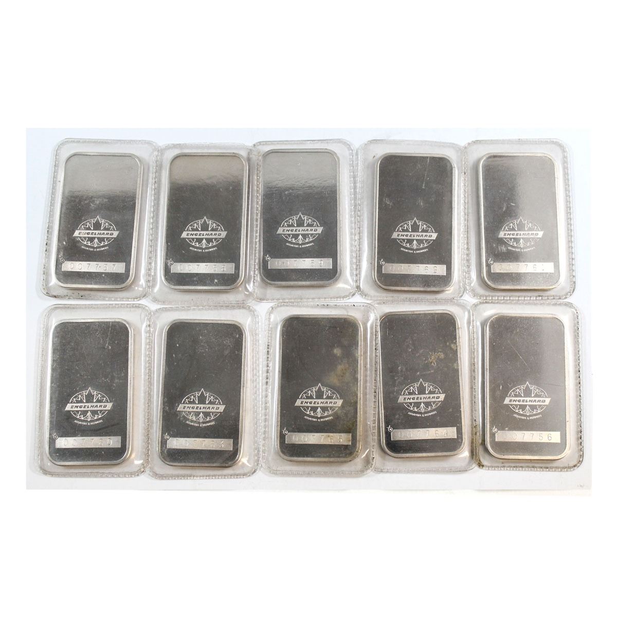 Consecutive! Scotia Bank - Engelhard 1oz Fine Silver Bars (Tax Exempt). You will receive serial #'s 007756 to 007765 all in original packaging. 10pcs.