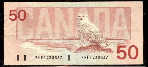 Consecutive ascending "Ladder" note. 1988 $50 FHF1234567 VF-EF.
