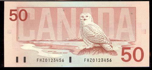 Consecutive ascending "Ladder" note. 1988 $50 FHHZ0123456 Gem uncirculated.