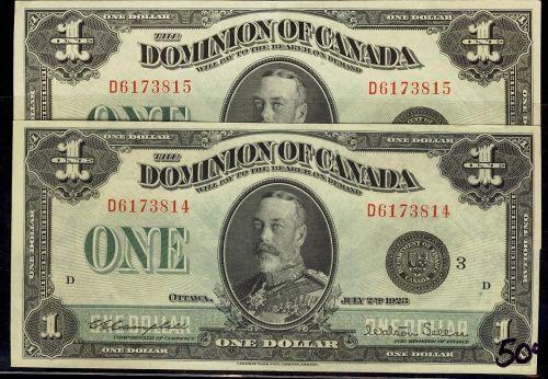Consecutive pair of 1923 $1 notes. DC-25n D6173814-3815. Both AU-UNC.