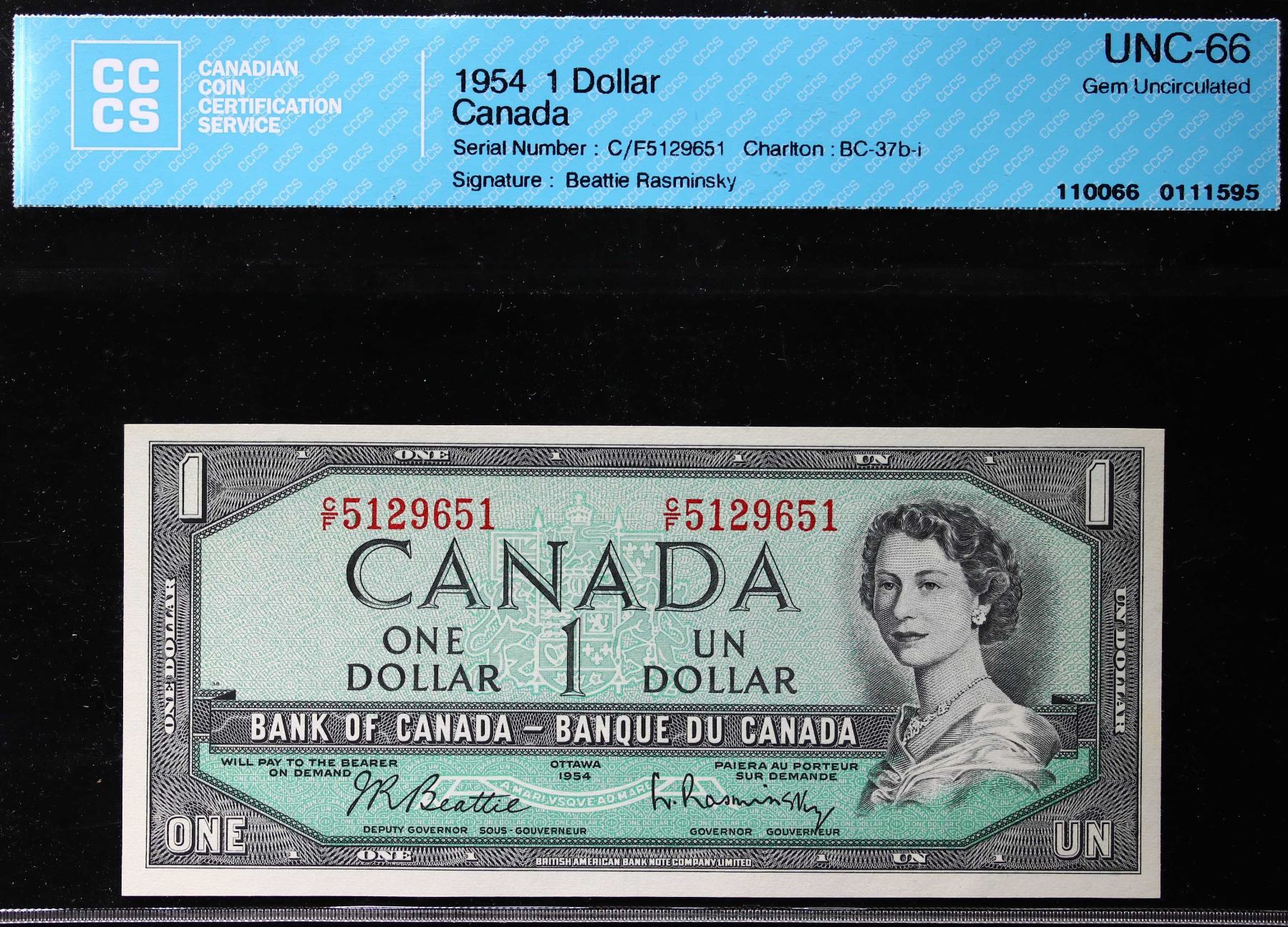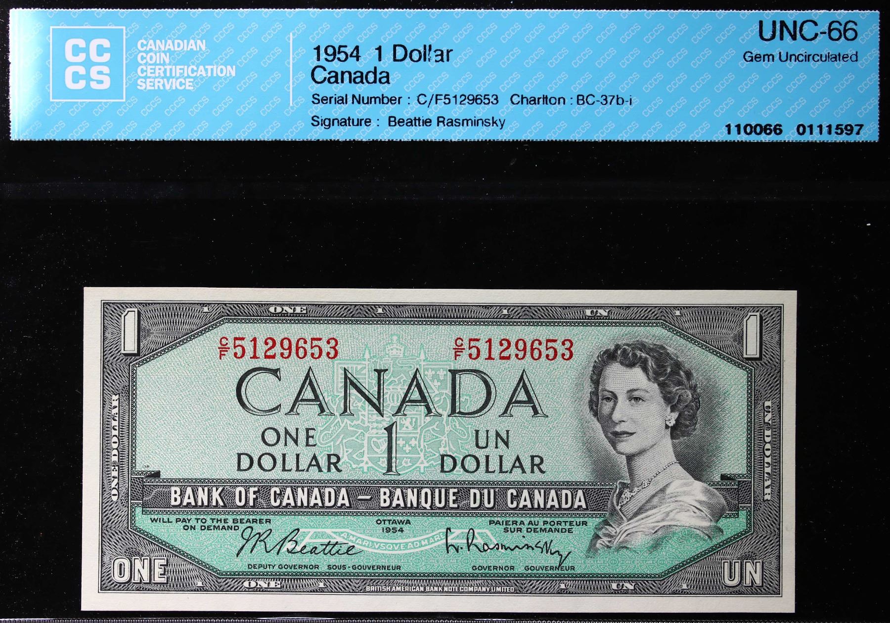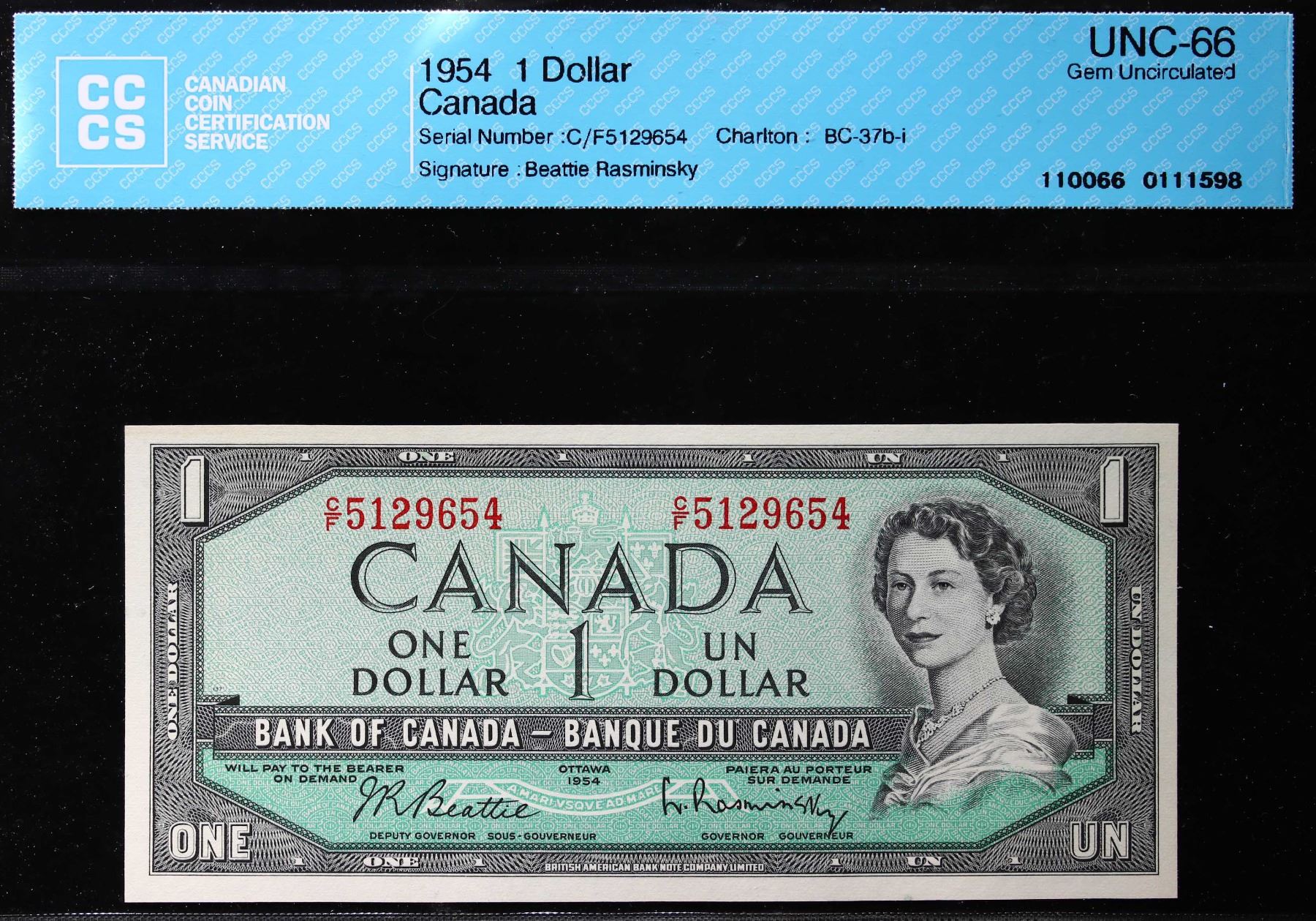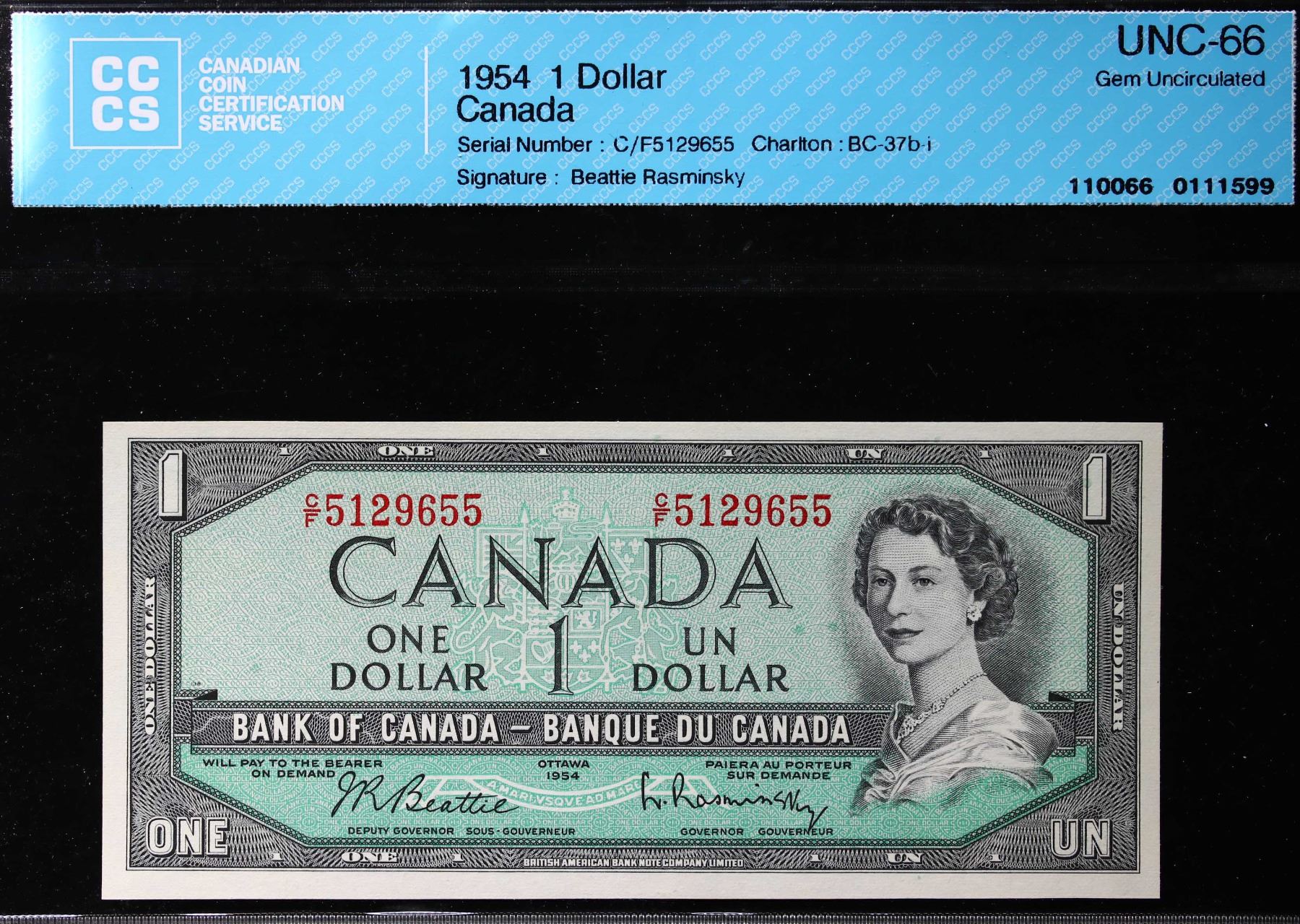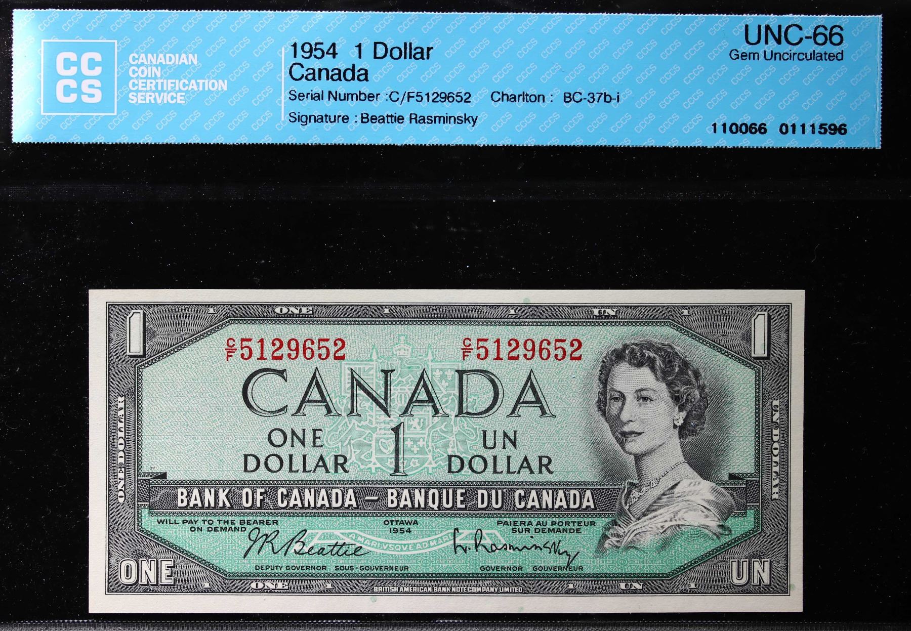 Consecutive run; 1954 $1 BC-37b-i #C/F5129651-656 CCCS UNC66. Lot of 6 consecutive notes.