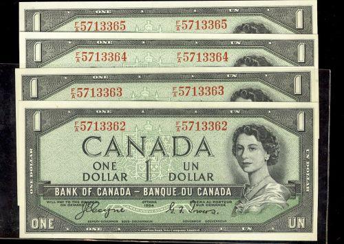 Consecutive run of 4 BC-29a 1954 $1 Coyne-Towers F/A5713362/3365. All Gem uncirculated.