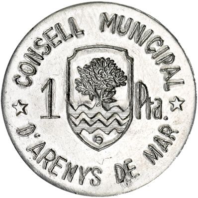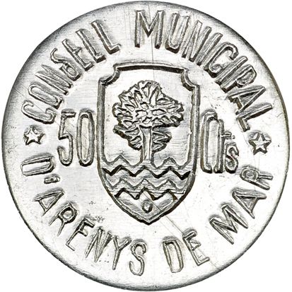 Consell Municipal D'Arenys de Mar. 50 céntimos y 1 peseta. S/F. Serie completa. VII-230 y 231. SC.