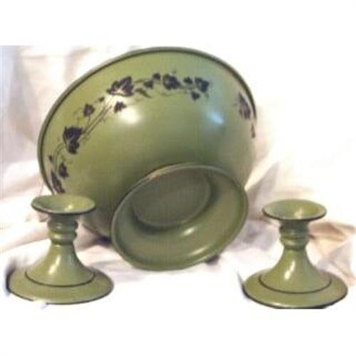 Matched set console fruit bowl with pair of candle holders / sticks. </em></td>