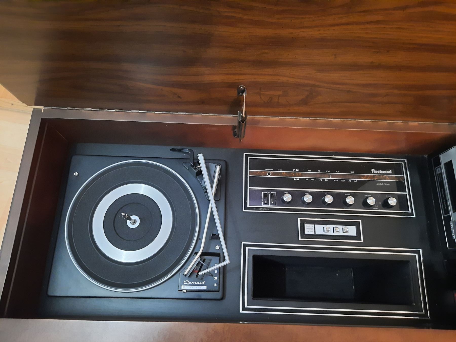 Console Stereo - Turntable and Speakers (Working 46" x 27" x 17")(Located Off-Site)