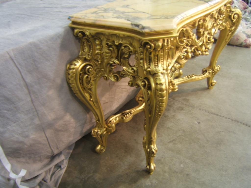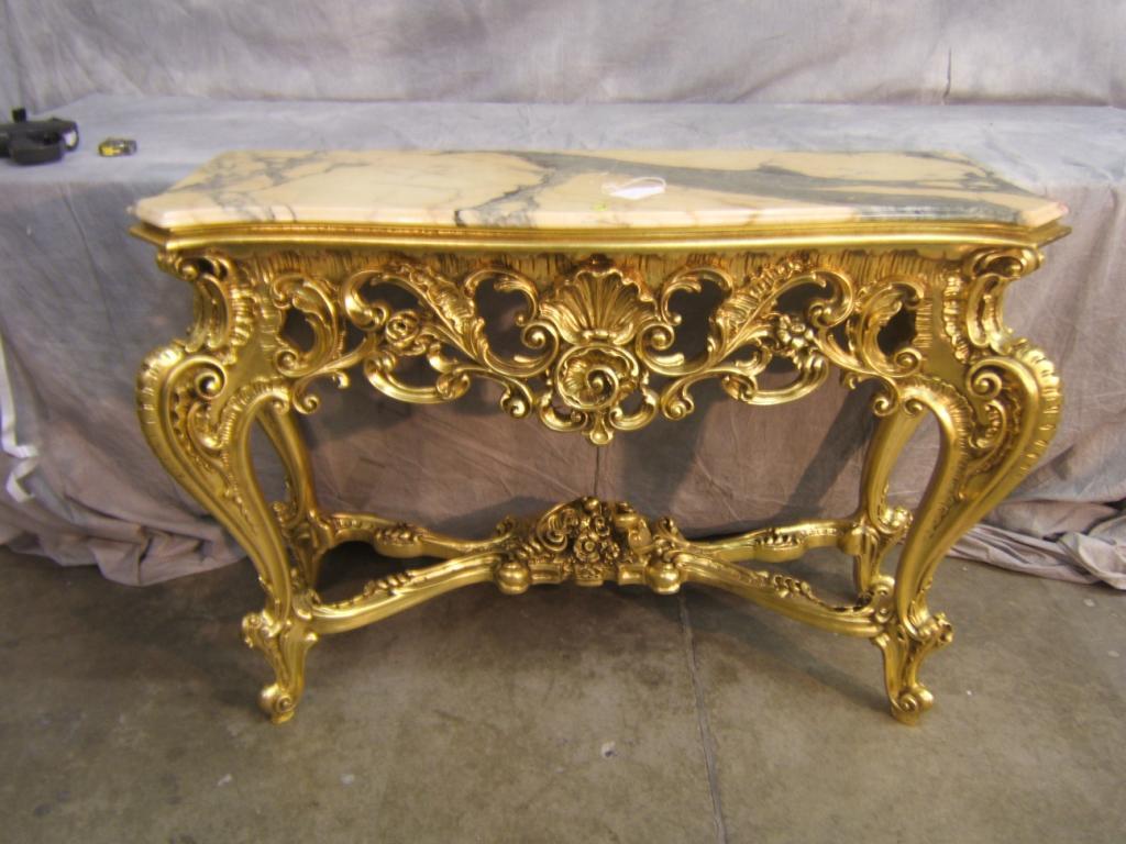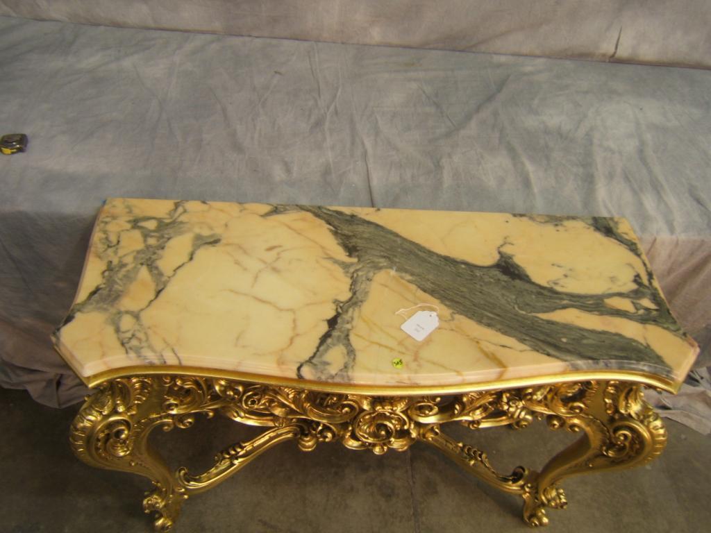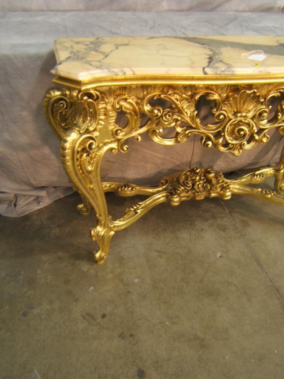 Louis XV Carved Gilt Wood Console with Elaborately Carved Acanthus Leaves with C-Scroll Legs and Scroll Toes with Portuguese Marble Top 35.5" Tall 65.5" Long 18" Deep, Top Has Been Broken