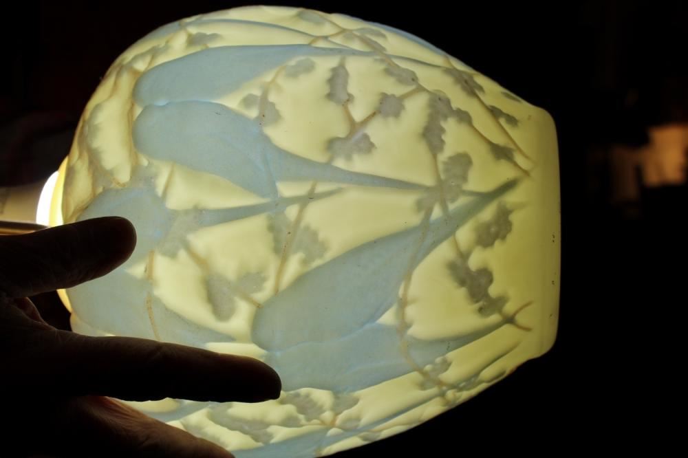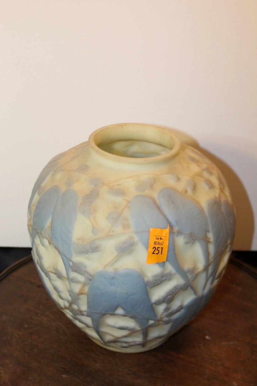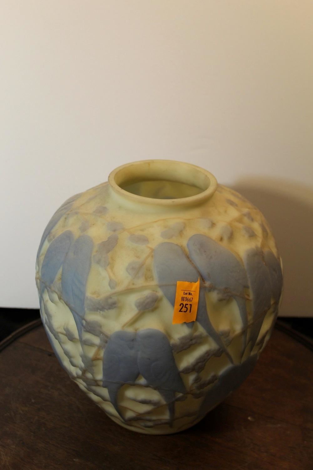 Consolidated glass, Art Deco, lovebirds vase, measures approx. 10.5 inches tall