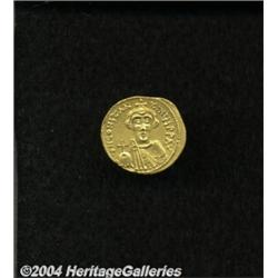 <B>Constans II.</B></I> A.D. 641-668. AV solidus (20 mm, 4.43 g). Constantinople, A.D. 641-646. Crowned facing bust, holding globus cruciger / Cross potent on three steps; (Theta)/CONOB. DOC 1i; SB 938. Choice XF. <BR><I>From the Geneva Collection.</B></I> <BR><BR><B>Important notice:</B> Heritage usually auctions material at the rate of 200-250 lots per hour. On some occasions eBay Live bid software or the Internet may not be able to keep up with the pace of the auction. We recommend placing a realistic absentee bid now as insurance to avoid disappointment. Occasionally the auctioneer may eliminate or reject an eBay Live bid, and the auctioneer may also reopen a lot after the close of the eBay live bidding (usually because we missed an audience bid), and may reject your bid even if it shows you as the winning bidder. By bidding via eBay Live, you agree that Heritage may award the lot to another bidder at its sole discretion under the circumstances described above or any other reasonable circumstances. Since eBay bids are not shown to us until we open the lot on the floor, we treat those bids just like floor bids. In most cases the floor responds before the eBay bid is presented to us, due to Internet lag time, so for consistency we have made it a policy that floor bids are always considered first over tie eBay live bids. Also please note that all Heritage lots purchased through eBay Live carry a 20% Buyer's Premium. Please make sure you read the Terms and Conditions before you bid.