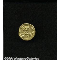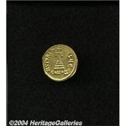 <B>Constans II.</B></I> A.D. 641-668. AV solidus (19 mm, 4.37 g). Constantinople, A.D. 641-646. Crowned facing bust, holding globus cruciger / Cross potent on three steps; E/CONOBS. DOC 3 var. (officina not listed); SB 940. Choice XF, nice. <BR><I>From the Geneva Collection.</B></I> <BR><BR><B>Important notice:</B> Heritage usually auctions material at the rate of 200-250 lots per hour. On some occasions eBay Live bid software or the Internet may not be able to keep up with the pace of the auction. We recommend placing a realistic absentee bid now as insurance to avoid disappointment. Occasionally the auctioneer may eliminate or reject an eBay Live bid, and the auctioneer may also reopen a lot after the close of the eBay live bidding (usually because we missed an audience bid), and may reject your bid even if it shows you as the winning bidder. By bidding via eBay Live, you agree that Heritage may award the lot to another bidder at its sole discretion under the circumstances described above or any other reasonable circumstances. Since eBay bids are not shown to us until we open the lot on the floor, we treat those bids just like floor bids. In most cases the floor responds before the eBay bid is presented to us, due to Internet lag time, so for consistency we have made it a policy that floor bids are always considered first over tie eBay live bids. Also please note that all Heritage lots purchased through eBay Live carry a 20% Buyer's Premium. Please make sure you read the Terms and Conditions before you bid.