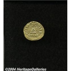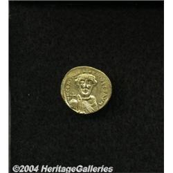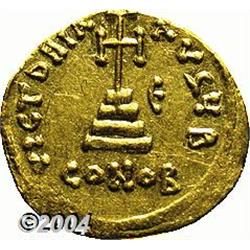 <B>Constans II.</B></I> A.D. 641-668. AV solidus (20 mm, 4.44 g). Constantinople, indictional year 5 (A.D. 647). Crowned facing bust, holding globus cruciger / Cross potent on three steps; E in right field; B/CONOB. DOC 5a; SB 942. XF. <BR><I>From the Geneva Collection.</B></I> <BR><BR><B>Important notice:</B> Heritage usually auctions material at the rate of 200-250 lots per hour. On some occasions eBay Live bid software or the Internet may not be able to keep up with the pace of the auction. We recommend placing a realistic absentee bid now as insurance to avoid disappointment. Occasionally the auctioneer may eliminate or reject an eBay Live bid, and the auctioneer may also reopen a lot after the close of the eBay live bidding (usually because we missed an audience bid), and may reject your bid even if it shows you as the winning bidder. By bidding via eBay Live, you agree that Heritage may award the lot to another bidder at its sole discretion under the circumstances described above or any other reasonable circumstances. Since eBay bids are not shown to us until we open the lot on the floor, we treat those bids just like floor bids. In most cases the floor responds before the eBay bid is presented to us, due to Internet lag time, so for consistency we have made it a policy that floor bids are always considered first over tie eBay live bids. Also please note that all Heritage lots purchased through eBay Live carry a 20% Buyer's Premium. Please make sure you read the Terms and Conditions before you bid.