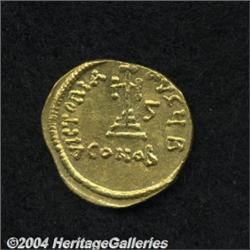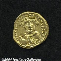 <B>Constans II.</B></I> A.D. 641-668. AV solidus (19 mm, 4.39 g). Constantinople, indictional year 6 (A.D. 647/8). Crowned facing bust, holding globus cruciger / Cross potent on three steps; S in right field; B/CONOB. DOC 7 var. (officina not listed); SB 944. XF. <BR><I>From the Geneva Collection.</B></I> <BR><BR><B>Important notice:</B> Heritage usually auctions material at the rate of 200-250 lots per hour. On some occasions eBay Live bid software or the Internet may not be able to keep up with the pace of the auction. We recommend placing a realistic absentee bid now as insurance to avoid disappointment. Occasionally the auctioneer may eliminate or reject an eBay Live bid, and the auctioneer may also reopen a lot after the close of the eBay live bidding (usually because we missed an audience bid), and may reject your bid even if it shows you as the winning bidder. By bidding via eBay Live, you agree that Heritage may award the lot to another bidder at its sole discretion under the circumstances described above or any other reasonable circumstances. Since eBay bids are not shown to us until we open the lot on the floor, we treat those bids just like floor bids. In most cases the floor responds before the eBay bid is presented to us, due to Internet lag time, so for consistency we have made it a policy that floor bids are always considered first over tie eBay live bids. Also please note that all Heritage lots purchased through eBay Live carry a 20% Buyer's Premium. Please make sure you read the Terms and Conditions before you bid.