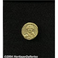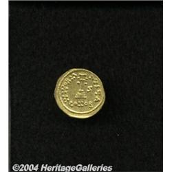 <B>Constans II.</B></I> A.D. 641-668. AV solidus (19 mm, 4.32 g). Constantinople, indictional year 6 (A.D. 647/8). Crowned facing bust, holding globus cruciger / Cross potent on three steps; S in right field; A/CONOB. DOC 11a; SB 947. VF. <BR><I>From the Geneva Collection.</B></I> <BR><BR><B>Important notice:</B> Heritage usually auctions material at the rate of 200-250 lots per hour. On some occasions eBay Live bid software or the Internet may not be able to keep up with the pace of the auction. We recommend placing a realistic absentee bid now as insurance to avoid disappointment. Occasionally the auctioneer may eliminate or reject an eBay Live bid, and the auctioneer may also reopen a lot after the close of the eBay live bidding (usually because we missed an audience bid), and may reject your bid even if it shows you as the winning bidder. By bidding via eBay Live, you agree that Heritage may award the lot to another bidder at its sole discretion under the circumstances described above or any other reasonable circumstances. Since eBay bids are not shown to us until we open the lot on the floor, we treat those bids just like floor bids. In most cases the floor responds before the eBay bid is presented to us, due to Internet lag time, so for consistency we have made it a policy that floor bids are always considered first over tie eBay live bids. Also please note that all Heritage lots purchased through eBay Live carry a 20% Buyer's Premium. Please make sure you read the Terms and Conditions before you bid.