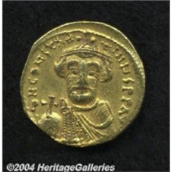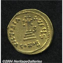 <B>Constans II.</B></I> A.D. 641-668. AV solidus (19 mm, 4.24 g). Constantinople, indictional year 6 (A.D. 647/8). Crowned facing bust, holding globus cruciger / Cross potent on three steps; S in right field; S/CONOB. DOC 11b; SB 947. Near XF, clipped. <BR><I>From the Geneva Collection.</B></I> <BR><BR><B>Important notice:</B> Heritage usually auctions material at the rate of 200-250 lots per hour. On some occasions eBay Live bid software or the Internet may not be able to keep up with the pace of the auction. We recommend placing a realistic absentee bid now as insurance to avoid disappointment. Occasionally the auctioneer may eliminate or reject an eBay Live bid, and the auctioneer may also reopen a lot after the close of the eBay live bidding (usually because we missed an audience bid), and may reject your bid even if it shows you as the winning bidder. By bidding via eBay Live, you agree that Heritage may award the lot to another bidder at its sole discretion under the circumstances described above or any other reasonable circumstances. Since eBay bids are not shown to us until we open the lot on the floor, we treat those bids just like floor bids. In most cases the floor responds before the eBay bid is presented to us, due to Internet lag time, so for consistency we have made it a policy that floor bids are always considered first over tie eBay live bids. Also please note that all Heritage lots purchased through eBay Live carry a 20% Buyer's Premium. Please make sure you read the Terms and Conditions before you bid.
