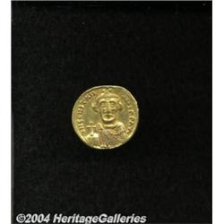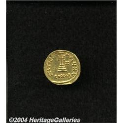 <B>Constans II.</B></I> A.D. 641-668. AV solidus (20 mm, 4.39 g). Constantinople, indictional year 7 (A.D. 648/9). Crowned facing bust, holding globus cruciger / Cross potent on three steps; Z in right field; H/CONOB+. DOC 14 var. (officina not listed); SB 950. Near XF, graffiti on reverse. <BR><I>From the Geneva Collection.</B></I> <BR><BR><B>Important notice:</B> Heritage usually auctions material at the rate of 200-250 lots per hour. On some occasions eBay Live bid software or the Internet may not be able to keep up with the pace of the auction. We recommend placing a realistic absentee bid now as insurance to avoid disappointment. Occasionally the auctioneer may eliminate or reject an eBay Live bid, and the auctioneer may also reopen a lot after the close of the eBay live bidding (usually because we missed an audience bid), and may reject your bid even if it shows you as the winning bidder. By bidding via eBay Live, you agree that Heritage may award the lot to another bidder at its sole discretion under the circumstances described above or any other reasonable circumstances. Since eBay bids are not shown to us until we open the lot on the floor, we treat those bids just like floor bids. In most cases the floor responds before the eBay bid is presented to us, due to Internet lag time, so for consistency we have made it a policy that floor bids are always considered first over tie eBay live bids. Also please note that all Heritage lots purchased through eBay Live carry a 20% Buyer's Premium. Please make sure you read the Terms and Conditions before you bid.