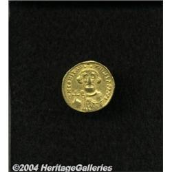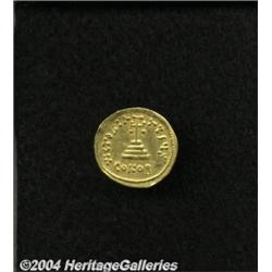 <B>Constans II.</B></I> A.D. 641-668. AV solidus (20 mm, 4.36 g). Constantinople, A.D. 650/1. Crowned facing bust, holding globus cruciger / Cross potent on three steps; S/CONOB. DOC 16b; SB 953. Near XF, scratches on reverse. <BR><I>From the Geneva Collection.</B></I> <BR><BR><B>Important notice:</B> Heritage usually auctions material at the rate of 200-250 lots per hour. On some occasions eBay Live bid software or the Internet may not be able to keep up with the pace of the auction. We recommend placing a realistic absentee bid now as insurance to avoid disappointment. Occasionally the auctioneer may eliminate or reject an eBay Live bid, and the auctioneer may also reopen a lot after the close of the eBay live bidding (usually because we missed an audience bid), and may reject your bid even if it shows you as the winning bidder. By bidding via eBay Live, you agree that Heritage may award the lot to another bidder at its sole discretion under the circumstances described above or any other reasonable circumstances. Since eBay bids are not shown to us until we open the lot on the floor, we treat those bids just like floor bids. In most cases the floor responds before the eBay bid is presented to us, due to Internet lag time, so for consistency we have made it a policy that floor bids are always considered first over tie eBay live bids. Also please note that all Heritage lots purchased through eBay Live carry a 20% Buyer's Premium. Please make sure you read the Terms and Conditions before you bid.